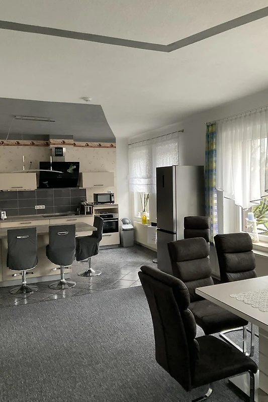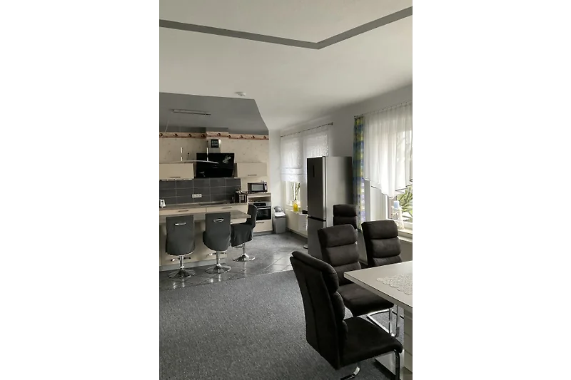 Welkom in het Appartement aan de Honingbar in Leipzig-Mölkau – uw perfecte thuis voor ontspannen vakantiedagen! Het ruime vakantieappartement biedt op 120 m² plaats aan maximaal 6 gasten en is met drie slaapkamers en twee moderne badkamers ideaal voor families of vrienden. Tapijtvloeren en liefdevol ingerichte woonruimtes creëren een aangename sfeer waarin u zich meteen thuis zult voelen. Geniet van ontspannen avonden in de woonkamer met tv of maak gebruik van de snelle wifi voor uw individuele behoeften. De volledig uitgeruste kitchenette met groot keramisch kookveld, vaatwasser, waterkoker en koffiemachine (filterkoffie en volautomaat) nodigt uit om samen te koken. Voor families is er een kinderbedje beschikbaar en verse bedlinnen en handdoeken zijn uiteraard aanwezig. De woning is uitsluitend gereserveerd voor niet-rokers en biedt een eigen afgesloten parkeerplaats direct bij het huis – zo begint u stressvrij aan uw vakantie.