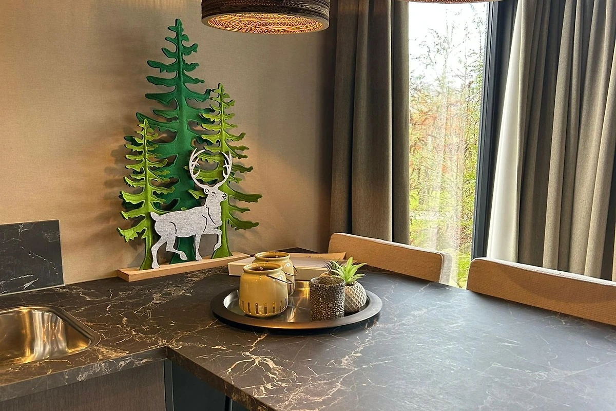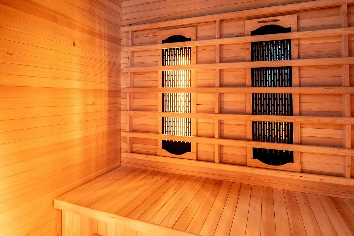 Binnen biedt de lodge een lichte en uitnodigende woon- en slaapruimte, ingericht met comfortabele zitmeubels, kwaliteitsbeddengoed en een infraroodsauna, voor een aangenaam verblijf. Een praktische keukenhoek stelt u in staat om op uw eigen tempo maaltijden en koffie te bereiden, terwijl de privébadkamer met douche en toilet zorgt voor dagelijks comfort. Essentiële moderne voorzieningen zoals wifi en betrouwbare verwarming creëren een gastvrije ruimte in alle seizoenen.