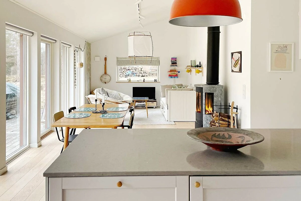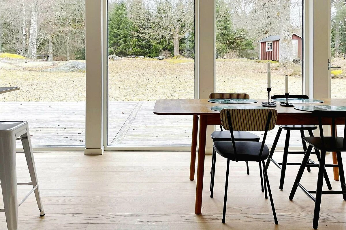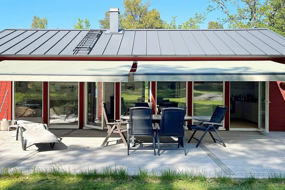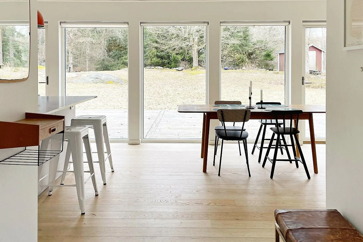 Genießen Sie einen unvergesslichen Urlaub auf Tynningö, Vaxholm, im Stockholmer Schärengarten, nur einen Steinwurf vom Meer und der Küste entfernt! Perfekt für alle, die eine stilvolle Unterkunft in einer ruhigen Schärenlandschaft, mit Bademöglichkeiten in allen Formen wünschen; von felsigen Klippen bis hin zu familienfreundlichen Sandstränden. Gute Verkehrsanbindung sowohl per Autofähre als auch per autofreiem Schärenboot nach Vaxholm und Strömkajen im Zentrum von Stockholm! Sie wohnen in einem 2020 erbauten Ferienhaus mit großzügiger Deckenhöhe und großen Fenstern, die ein schönes Gefühl von Weite und Nähe zur Außenumgebung vermitteln. Offene Raumaufteilung zwischen Küche und Wohnzimmer, mit einem Essbereich und einem schönen Kamin in der Mitte des Raumes. Zugang zu einer großen Terrasse, wo Sie die Sonne genießen oder sich im Schatten unter der Markise abkühlen können. Hier finden Sie Gartenmöbel und einen Holzkohlegrill vor, perfekt für gemütliche Abendessen mit Blick auf den schönen Naturgarten mit Rasen und Spielgeräten, die zum Spielen einladen! Das Ferienhaus verfügt über zwei Schlafzimmer; eines mit Doppelbett und Stauraum im Kleiderschrank, das andere mit Familien-Etagenbett, dessen untere Liegefläche breiter ist (120 cm) als oben. Im Wohnzimmer gibt es ein Schlafsofa für zwei Personen sowie einen Fernsehbildschirm mit der Möglichkeit, von Ihrem eigenen Handy zu streamen. Stilvolles Badezimmer mit einer schönen Deckenhöhe, ausgestattet mit Toilette, Waschbecken, Dusche und Waschmaschine. Für diejenigen, die lieber getrennt von den anderen in der Gruppe schlafen möchten, gibt es alternativ einen separaten Annex auf dem Grundstück mit zwei Schlafplätzen auf einem Schlafsofa. Der Annex hat keinen Strom und ist nur teilweise isoliert, bietet aber eine alternative Schlafgelegenheit für diejenigen, die es wünschen! Dank der fantastischen Nähe zum Meer und See können Sie Ihren Tag hier mit einem Bad von der nur wenige Minuten entfernten Badeleiter auf dem Steg beginnen. Über diese Fußgängerbrücke können Sie bei einem kurzen Spaziergang auch Norra Tynningö erreichen, von wo aus Sie mit dem Boot nach Vaxholm fahren können, wo es im Sommer floriert! Dort können Sie im Hafen gutes Essen genießen, durch die Gassen zwischen schönen Häusern und Gärten, Cafés und Geschäften schlendern. Dort finden Sie auch die Dienstleistungen, die Sie möglicherweise benötigen, wie ein Lebensmittelgeschäft, eine Apotheke usw. Von Vaxholm aus starten mehrere Bootsfahrten zu anderen Inseln im Schärengarten und ins Zentrum von Stockholm. Hier gibt es für alle Interessen und Altersgruppen viel zu entdecken. Mit der Autofähre erreichen Sie Norra Lagnö und weiter nach Gustavsberg, wo es einen großen Einkaufsmarkt gibt, der sich perfekt zum Eindecken von Lebensmitteln auf dem Weg zur Unterkunft eignet. Es gibt auch einen unbemannten Laden auf Tynningö mit den gängigsten Artikeln, die man benötigen könnte.
