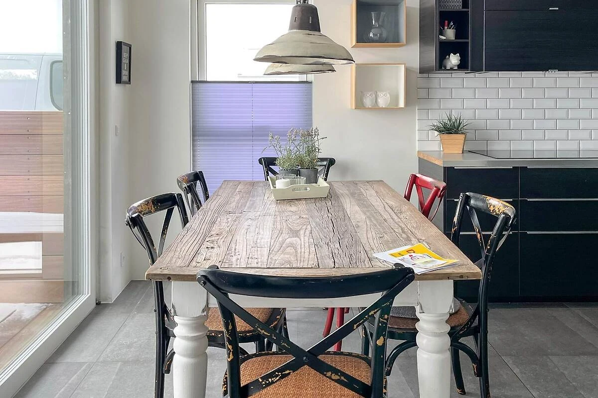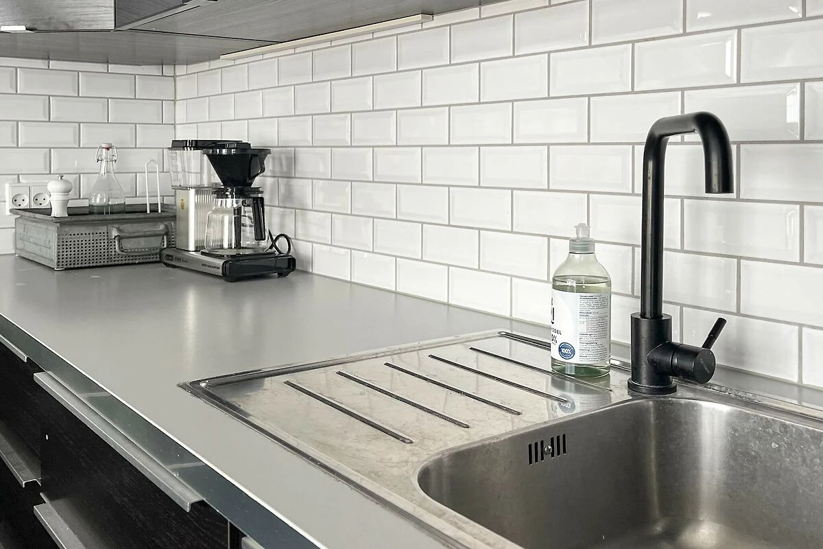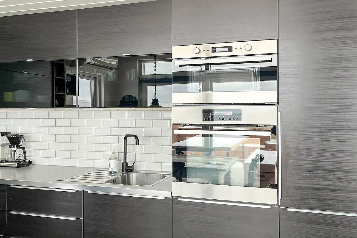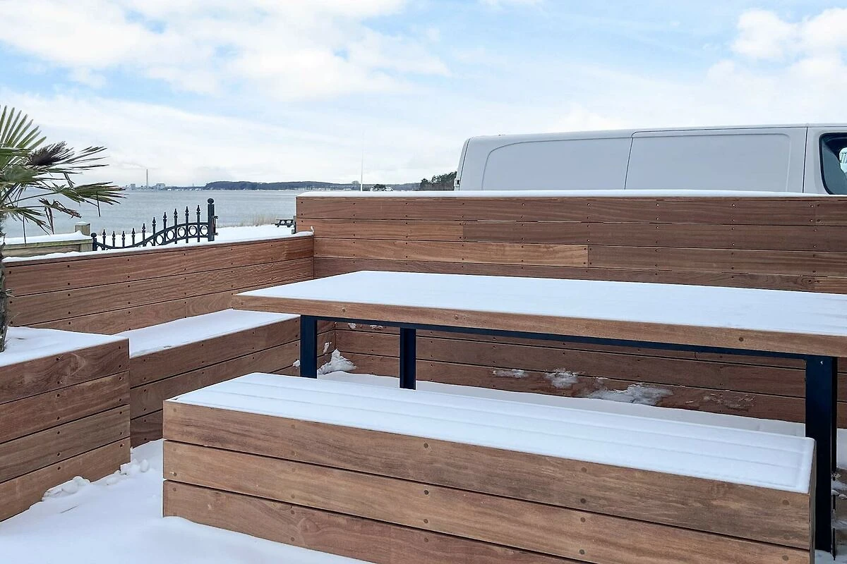 , keuken(kachel(inductie), koffiezetapparaat, magnetron, afwasmachine, koelkast, vriezer(60-99L)), woon/slaapkamer(TV(duitse zender(s), Deense TV zenders (DR1 en TV2), noorse TV zenders (NRK en TV2), zweedse TV zenders)), slaapkamer(2-pers. bed), slaapkamer(2-pers. bed), slaapkamer(2-pers. bed), badkamer(wasdroger, wasbak, douche, toilet, wasmachine), balkon of terras, terras, tuinmeubilair, ligstoelen, lucht-lucht warmtepomp, buitenhaard