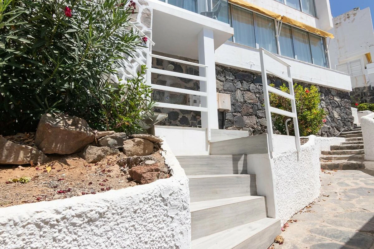 De magie van dit verblijf ontvouwt zich pas echt in de buitenruimtes. Uw privéterras is een afgelegen toevluchtsoord waar u kunt genieten van de Canarische zon op comfortabele ligstoelen of een ontbijt in de buitenlucht kunt nuttigen met uitzicht op de weelderige, groene omgeving. Wanneer de middagwarmte toeslaat, leidt een paar stappen u naar het gedeelde buitenzwembad, een sprankelende oase, perfect voor een verfrissende duik. Omdat alles gelijkvloers is, is de overgang van uw ochtendkoffie op het terras naar een duik in het zwembad moeiteloos en toegankelijk voor iedereen.