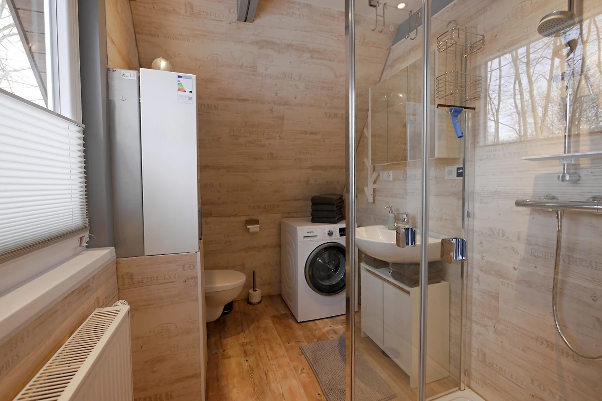 Uitgebreide uitrusting die nauwelijks wensen openlaat: wifi, wasmachine, strijkbenodigdheden, wandelrugzak, trekkingstokken, gezelschapsspellen en meer. Een centrale parkeerplaats bevindt zich ca. 60 m van het huis verwijderd. PKW E-laadstations bevinden zich bij de ingang van het vakantiedorp.
