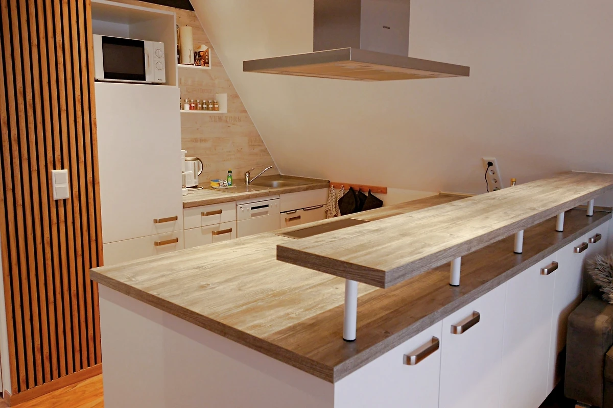 - open keuken met bar en TOP-uitrusting die nauwelijks wensen overlaat: o.a. magnetron, vaatwasser, koffiezetapparaat, PAD-machine, waterkoker, broodrooster, mixer, wafelijzer/sandwichtoaster