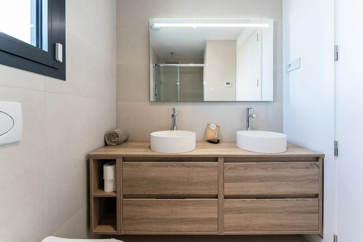 De accommodatie heeft een doordachte indeling met drie comfortabele slaapkamers en twee moderne badkamers, waardoor het ideaal is voor gezinnen of groepen vrienden. De slaapgelegenheid bestaat uit een hoofdslaapkamer met een comfortabel tweepersoonsbed, terwijl de tweede en derde slaapkamer elk zijn ingericht met twee eenpersoonsbedden. Met airconditioning in alle kamers en twee complete badkamers met verfrissende douches en strakke wastafels, garandeert de accommodatie een koel en comfortabel verblijf, zelfs tijdens de warmste Spaanse zomers.