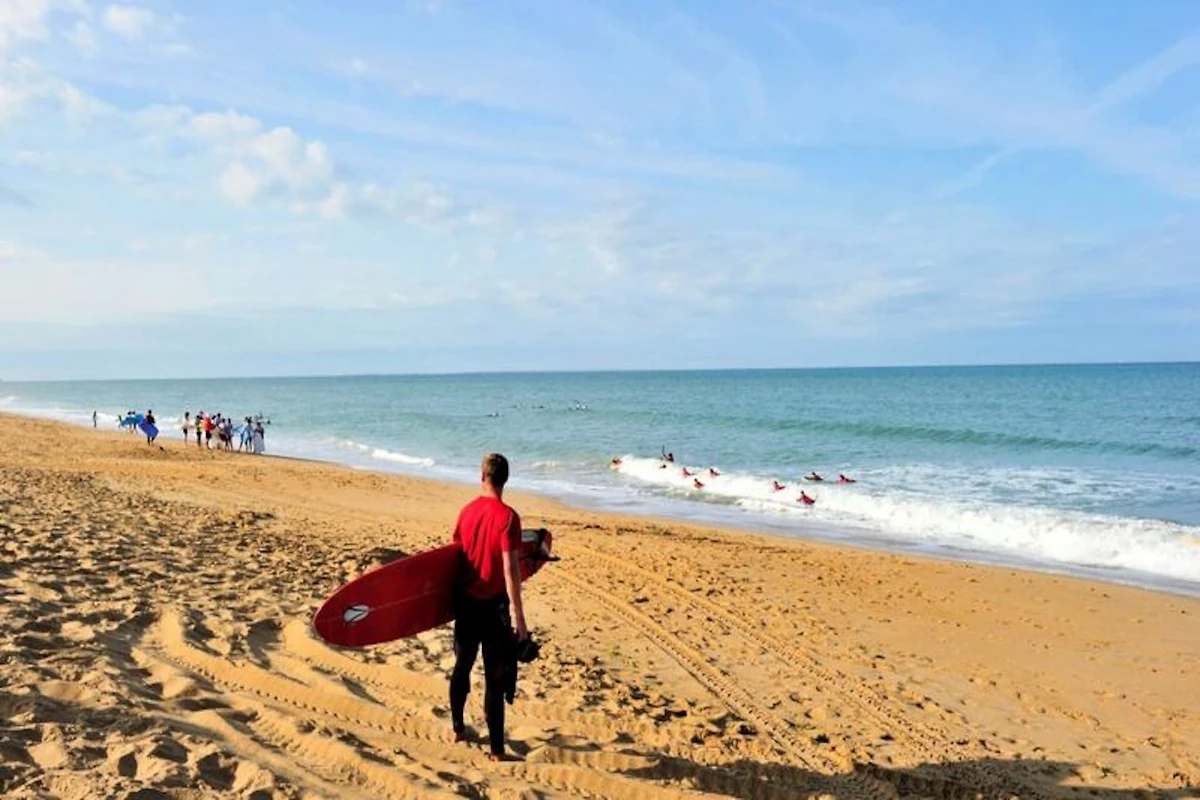 Te midden van de serene landschappen van de Vendée, tussen de charmante stadjes Longeville-sur-Mer en La Tranche-sur-Mer, ligt de residentie Goélia Le Domaine des Oyats***. Omgeven door het weelderige nationale bos, biedt deze retraite een rustige ontsnapping voor families en vrienden die weer in contact willen komen met de natuur. Een korte wandeling van slechts 700 meter over de paden met dennengeur brengt u naar het strand van Les Conches, bekend om zijn goudgele zand en levendige surfscene. Hier vormt het ritme van de golven de perfecte achtergrond voor ontspanning of avontuur.