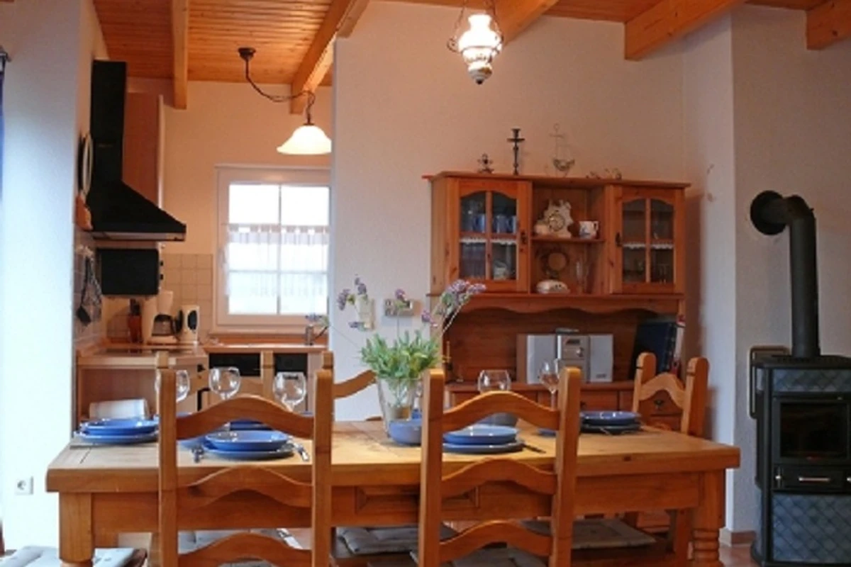 De volledig uitgeruste kitchenette met vaatwasser, magnetron, waterkoker en koffiezetapparaat biedt ideale basisvoorzieningen voor zelfverzorgers. Voor gezinnen zijn er een kinderbedje en een kinderstoel beschikbaar. Praktisch zijn ook de wasmachine, de droger, het strijkijzer en de föhn. Na een uitstapje in de omgeving ontspant u in de gezellige woonkamer met tv en gratis wifi. Het vakantiehuis is uitsluitend geschikt voor niet-rokers en is ook uitstekend geschikt voor een langer verblijf.