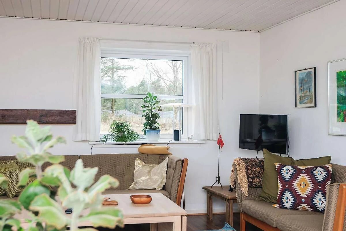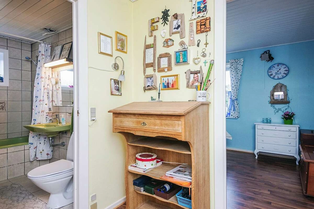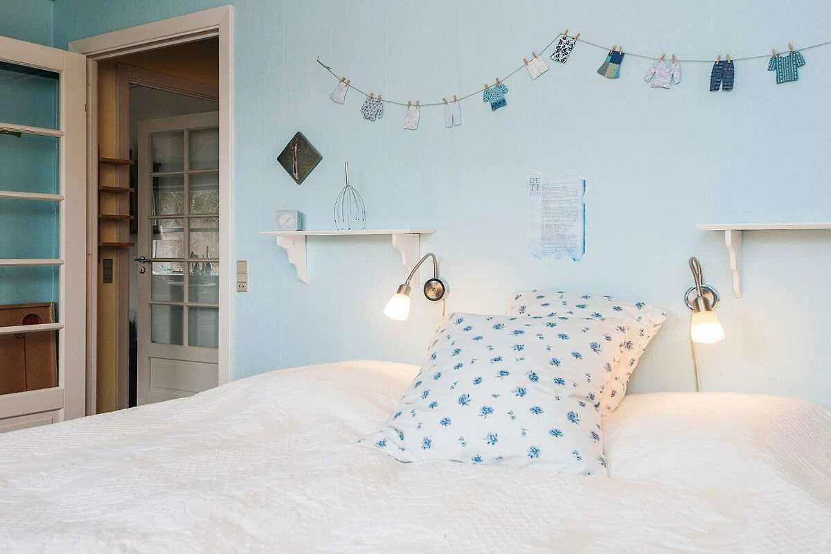 , keuken(fornuis(elektrisch), koffiezetapparaat, magnetron, koel-/vriescombinatie), woon/slaapkamer(TV), slaapkamer(2-pers. bed), slaapkamer(2-pers. bed), badkamer(ligbad, wasbak, douche, toilet), afwasmachine, wasmachine, lucht-lucht warmtepomp