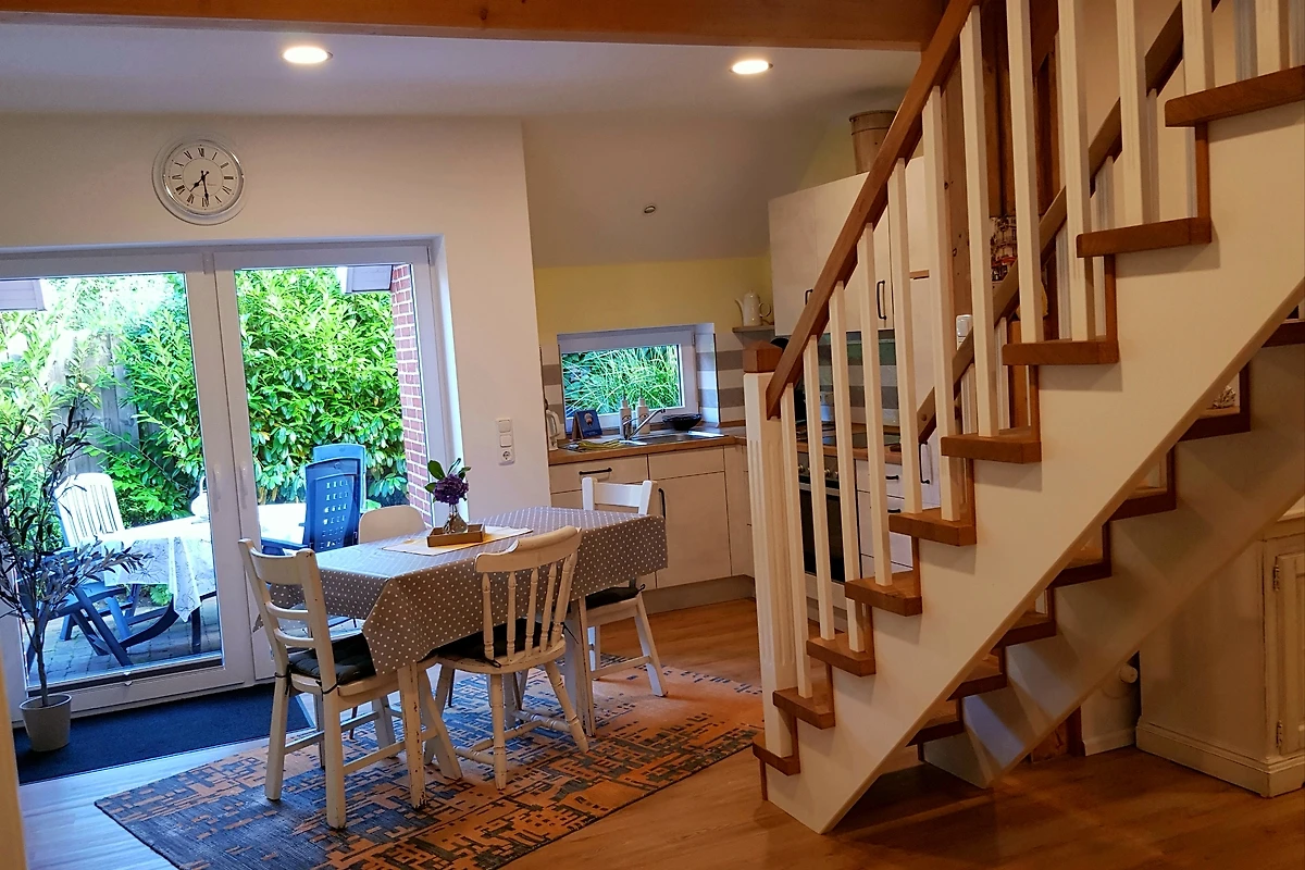 Het 65 m² grote vakantieappartement biedt plaats aan maximaal 5 gasten en beschikt over een grote woon-/eetkamer, 2 slaapkamers, 1 badkamer en 1 extra toilet. De royale tuin (35.000 m²) nodigt uit tot wandelen en ontdekken in het groen, of u ontspant op uw terras, dat perfecte voorwaarden biedt voor gezellige barbecues. In de nabijgelegen kleine stad Wiesmoor (5 km) bevindt zich voor de jongste gasten een avonturenspeeltuin met waterglijbaan direct aan het moor-openluchtbad "Ottermeer", een belevenis-minigolfbaan en een overdekt zwembad.