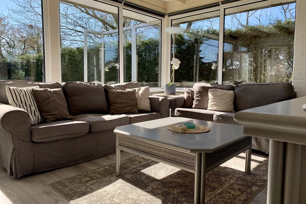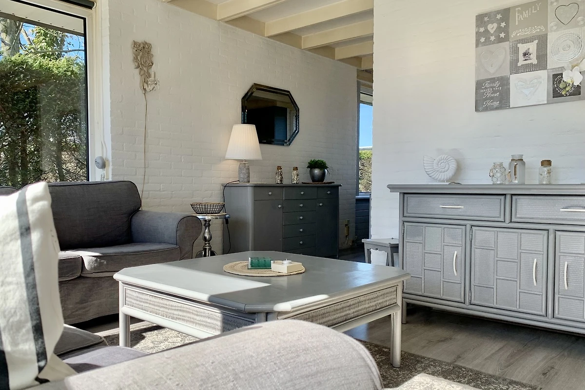 Gezellige woonkamer met comfortabele zithoek met een 2-zitsbank en een 3-zitsbank. Er is een Smart TV met diverse apps en KPN TV met een ruim aanbod aan Nederlandse en buitenlandse TV-zenders (waaronder Duits). Er is ook een DVD speler.