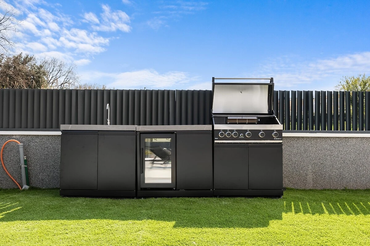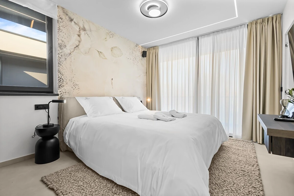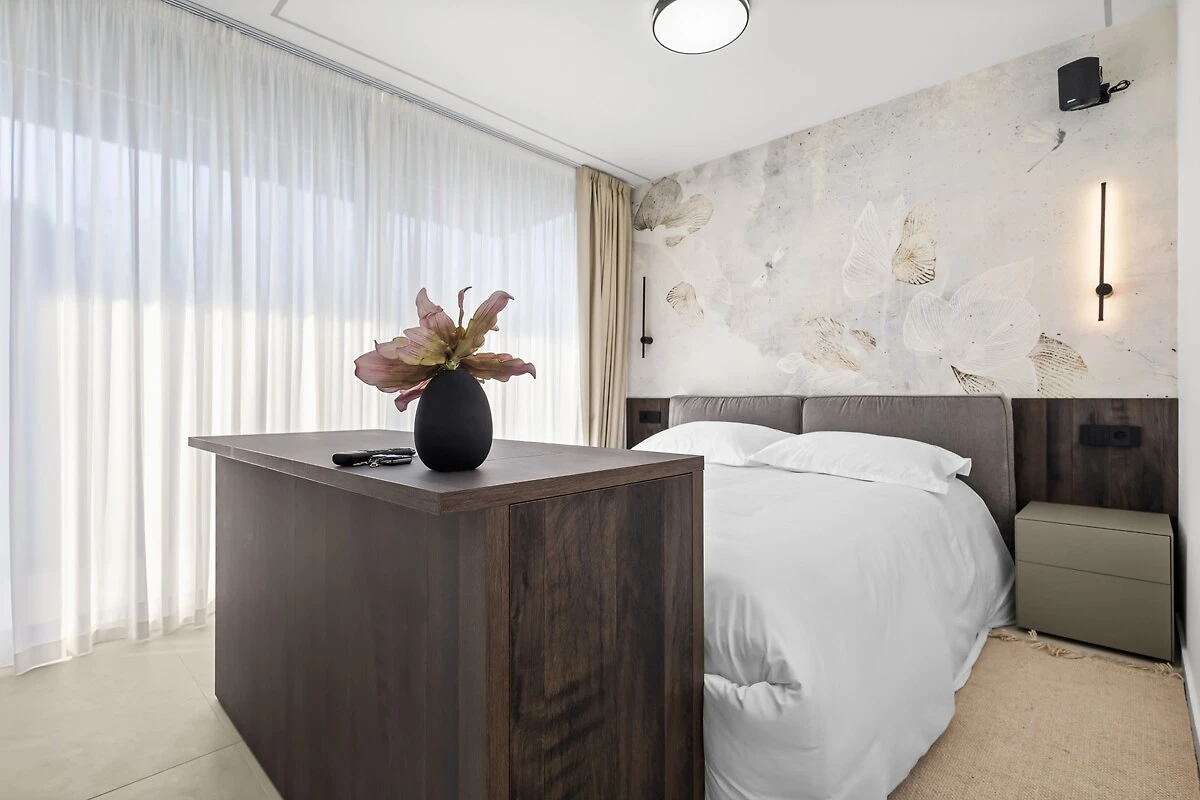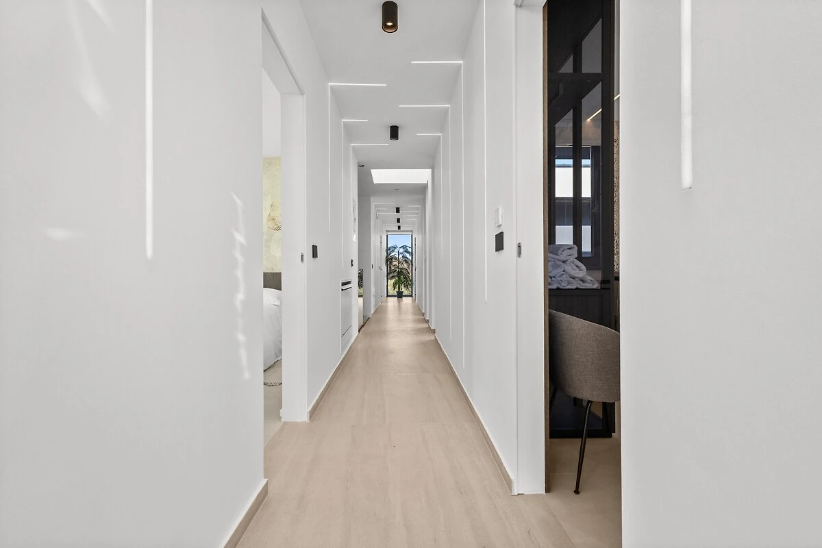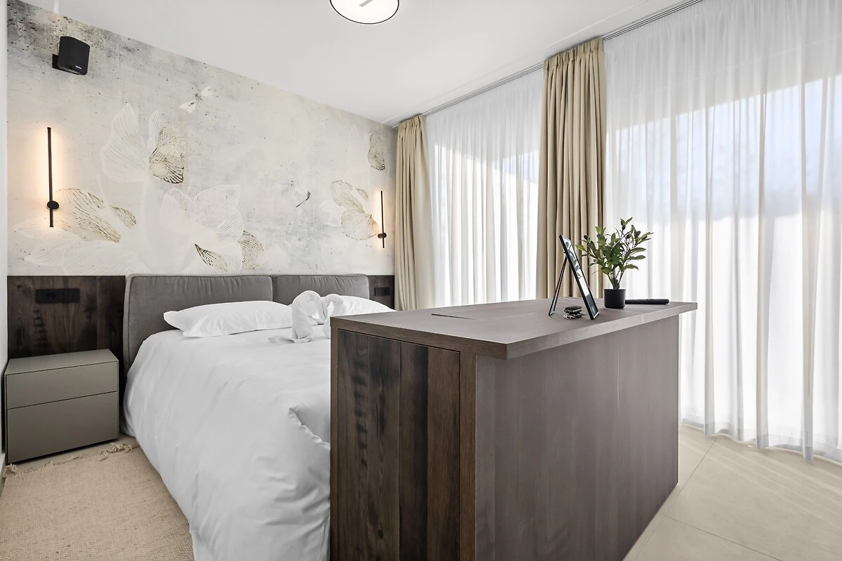 Het buitengedeelte is ideaal om te ontspannen en voor gezellige avonden – met zwembad, firepit-gedeelte en een buitenkeuken met grill en eetgedeelte. Een bijzonderheid van de villa zijn ook professionele luidsprekers, die zowel binnen als buiten beschikbaar zijn en gedurende het hele verblijf een eersteklas geluidservaring mogelijk maken.