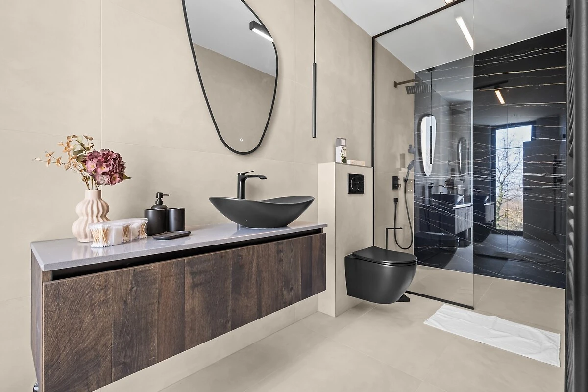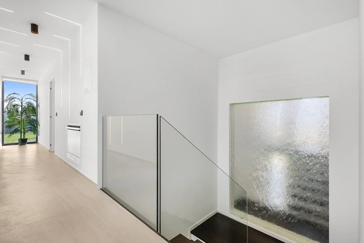 Het interieur van de villa wordt verder verrijkt door een waterval, die een aangename sfeer creëert en de ruimte een bijzonder accent geeft.