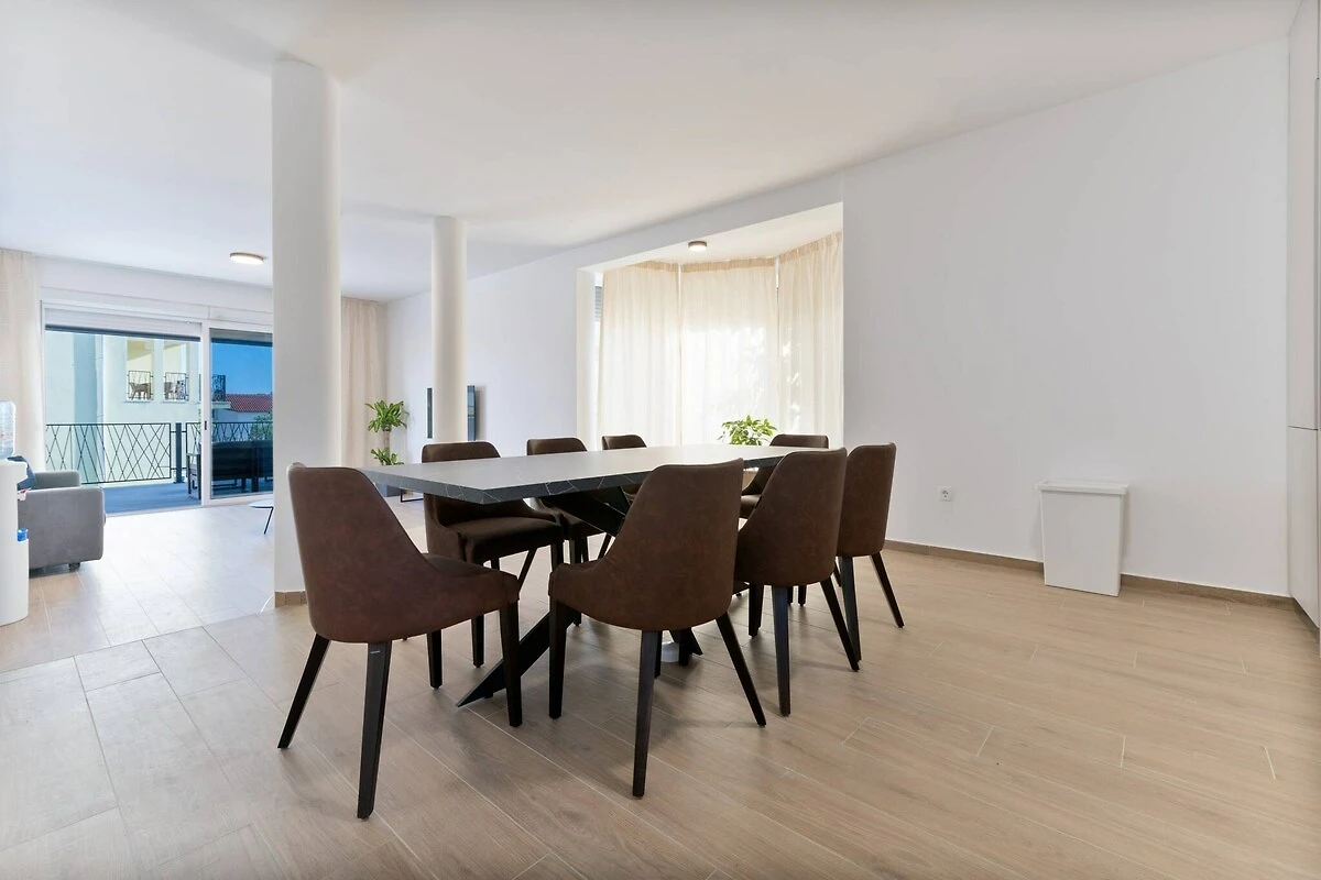 De locatie was perfect voor ons gezin. We hebben genoten van het buitenzwembad en de ligstoelen waren erg comfortabel. De woonkamer was een geweldige ontmoetingsruimte en de eettafel was perfect voor familiediners. Al met al een prettige ervaring.