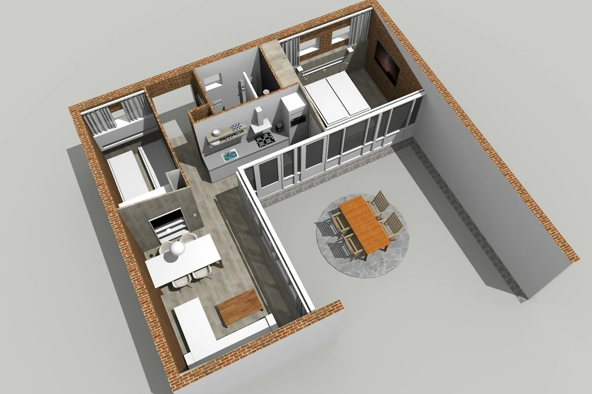 Verrassend licht en aangenaam comfortabel. Dit type vakantiehuis is ontworpen om veel tijd buiten door te brengen, maar is binnen ook gezellig en huiselijk. Het interieur, de grote keuken en de mooie badkamer nodigen vier personen uit tot een aangenaam verblijf.