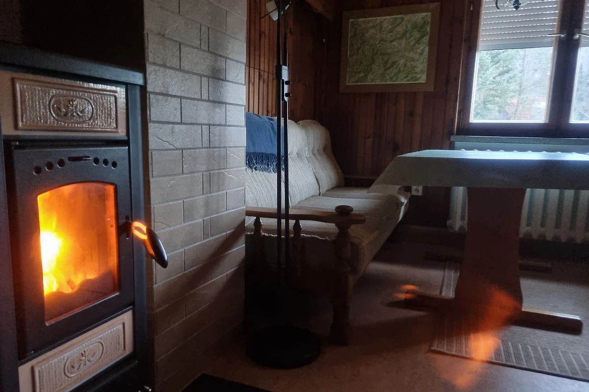 In de hut is alles een beetje donkerder en in DDR-sfeer, maar zo past het perfect in de herfststemming. We hebben een week met veel regendagen hier doorgebracht. Op de dagen dat we niet konden wandelen, zijn we veel in de accommodatie gebleven. Met de open haard en de gezellige lampen was dat helemaal niet erg. Buiten kon je de regen zien en binnen was het warm en gezellig. De uitrusting laat niets te wensen over en ook onze hond heeft er niets aan gemist. De wandelroutes rond Ilmenau zijn erg mooi en ook zonder auto konden we veel van de prachtige Thüringer natuur ervaren :)