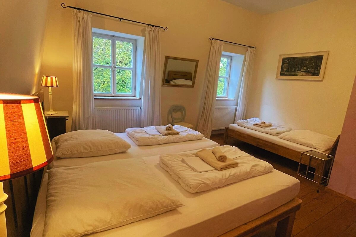 Wie de aura van oude gebouwen waardeert, die gevoel heeft voor spannende architectuur, die veel ruimte zoekt voor een groot gezin of groep onder één dak, een feest in een bijzondere sfeer wil organiseren, graag kookt en feestelijk serveert, romantische uitzichten en idyllische tuinen liefheeft, speelgelegenheden voor de kinderen nodig heeft en tegelijkertijd veel rust - die moet zeker de Wagnerei boeken.
