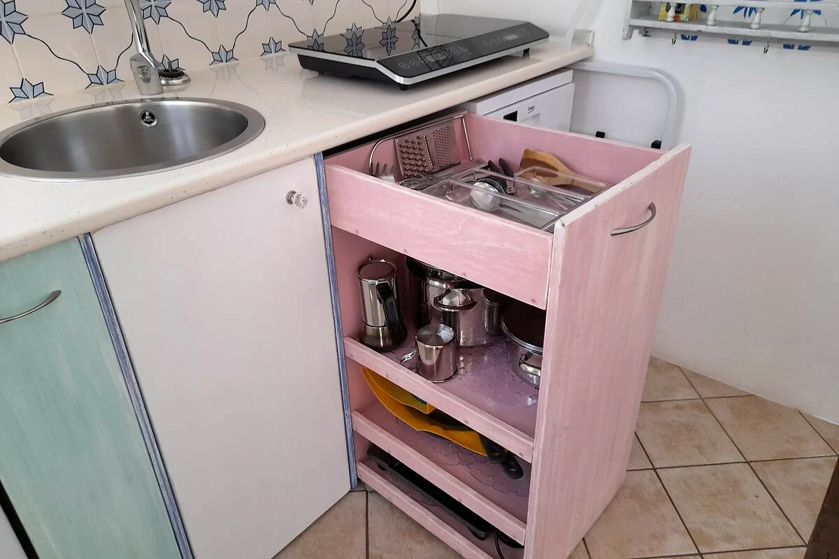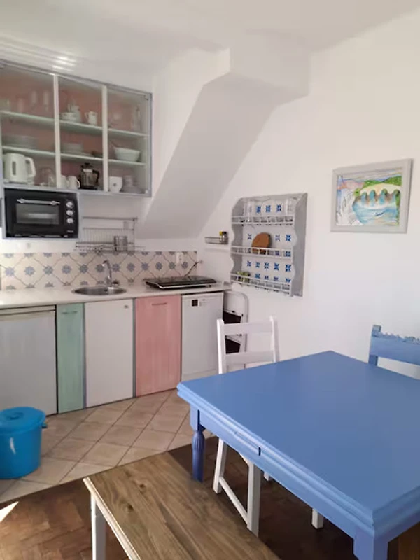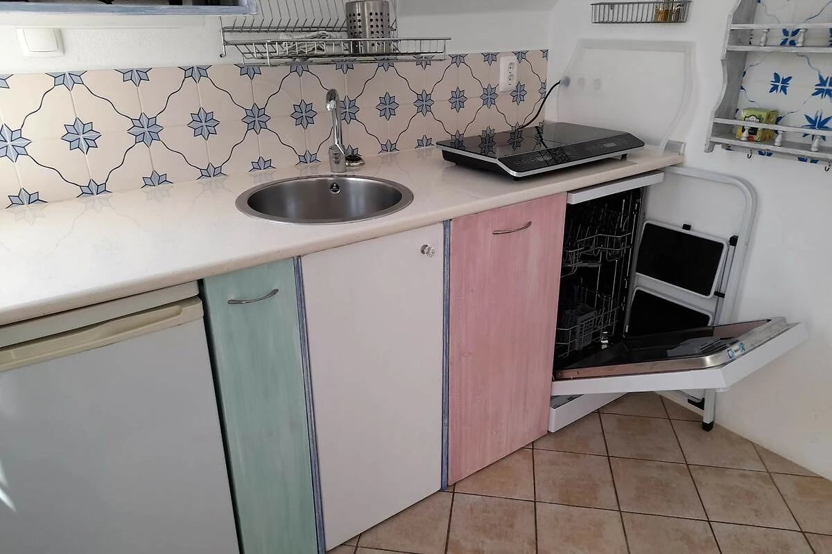 1 kitchenette met vaatwasser, kleine oven, dubbele inductiekookplaat, evenals 2 enkele inductiekookplaten (inductie), deze kunnen ook op het dakterras in de BBQ-zone worden gebruikt. . . . Broodrooster, waterkoker en alles wat je verder nodig hebt. 1 douchebad met wasmachine