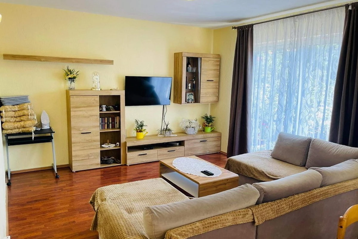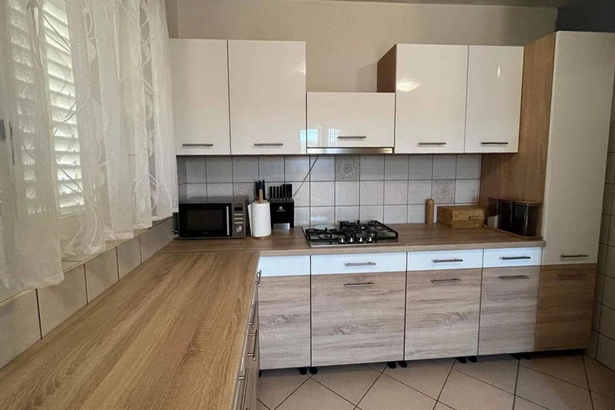Het huis is een alleenstaand gelijkvloers huis (geen extra verdiepingen/appartementen) met 120 m² en biedt plaats aan 6+1 personen. Tot de uitrusting behoren 3 tweepersoonskamers, een woonkamer met slaapbank, eet-/woonruimte en een volledig uitgeruste keuken met vaatwasser. Bovendien is er 1 badkamer met douche en een extra toilet met douche.