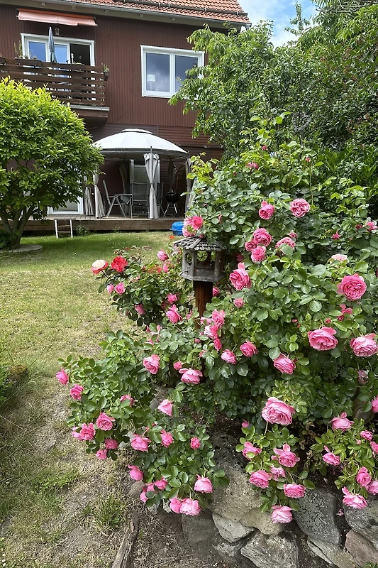 Zelfs als het regende, was het een genot om op het overdekte terras te zitten, in alle rust te lezen en te genieten van het uitzicht op de liefdevol aangelegde tuin en de bergen