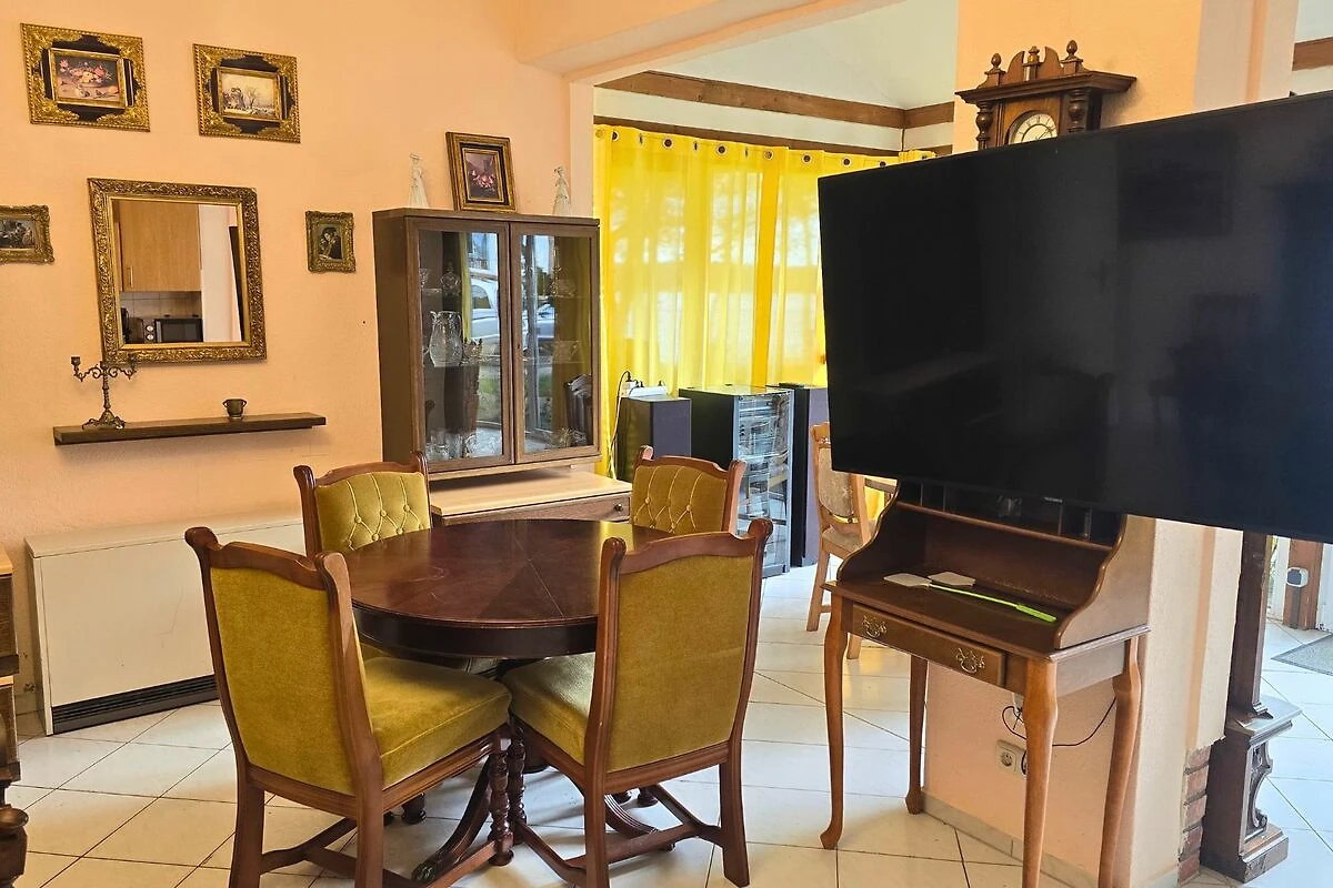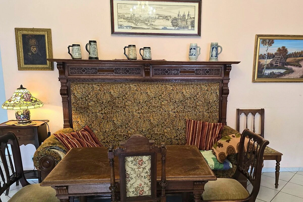 Het vakantiedorp Ferienparadies "Schweriner Seenplatte" ligt in Dabel OT Holzendorf, 4 km van Sternberg, in de natuurparkregio "Sternberger Seenland". Het landgoed is 2,5 hectare groot en ligt direct aan het Holzendorf-meer. In de 200 m lange kuststrook zijn er 3 eigen badplaatsen. De badzone bij de camping is ondiep, 80 m naar links kunnen de viervoeters zwemmen, en 200 m in de richting van het bos is de badzone voor vrienden van het nudisme - "FKK-Strand". Vanaf 4 plaatsen, op ons terrein aan het meer, kunnen de vissers vanaf het land hun "Petri-geluk" beproeven. Op en bij de twee vissteigers staan elk 2 banken en 3 waterfietsen en 10 roeiboten. In het park zijn bankjes, een ligweide en een kampvuurplaats. Er zijn 2 speeltuinen, beide met wip, schommel, glijbaan en klimrek, 1 strand- en 1 volleybalveld, tafeltennis, voetbal en basketbal en 3 tafeltennistafels. In onze speelzaal staat een pooltafel, airhockey, tafelvoetbalspeler. In de bioscoopzaal kunt u de meegebrachte DVD bekijken. Alle huizen en appartementen liggen op het zuiden en hebben uitzicht op het meer - met balkon of terras, tuinmeubilair en houtskoolbarbecue. er is één keer per week een kampvuur