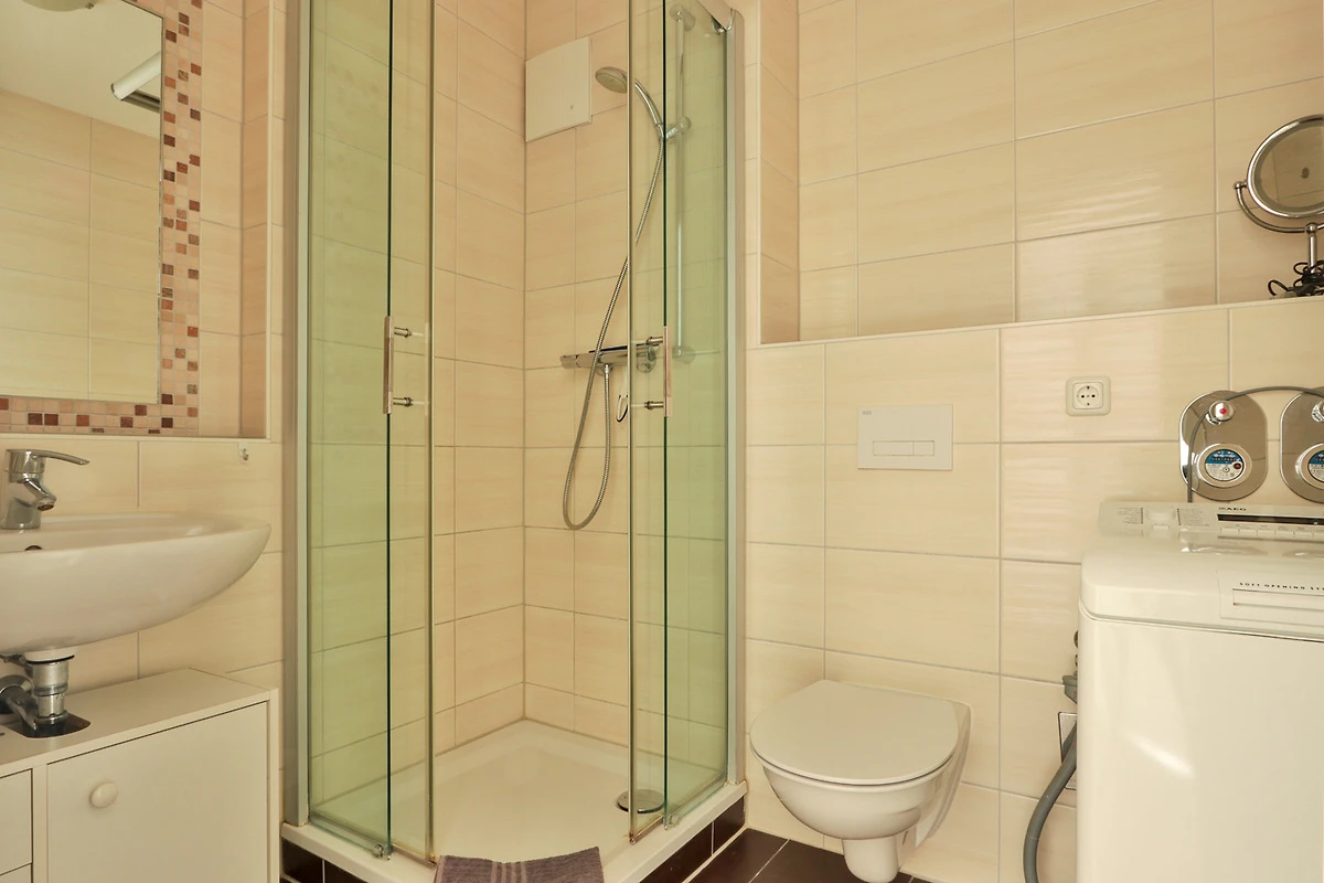 Het appartement is ingericht volgens de normen. De ligging is geweldig, strand ca. 350 m, bakkerij ca. 250 m. Het appartement heeft rolluiken voor alle ramen, wat helaas niet standaard is aan de Oostzee. Het balkon zou wat groter mogen zijn. Ik zou de flat niet willen kopen vanwege de kunst van het gebouw, 17 stenen muren en 9 externe isolatie. Maar het is nog steeds een vakantiehuis. Bij aankomst vertoonde het appartement enkele gebreken. Na een telefoontje naar het accommodatiebureau namen de eigenaren contact met ons op. Zij hebben nota genomen van de tekortkomingen en voor zover ik weet zijn deze reeds verholpen. Helaas zijn er tijdgenoten die het behang beschadigen met een stoel. De roomservice in Bad Doberan was kortaf en licht geïrriteerd aan de telefoon. Als je zo'n klus doet, moet je jezelf knijpen. De fewo heeft een wasmachine. Dat is geweldig. We vonden na een week maar helaas een Tschirrt in deze voor, dus dit rook muf. Het wassen ging goed.