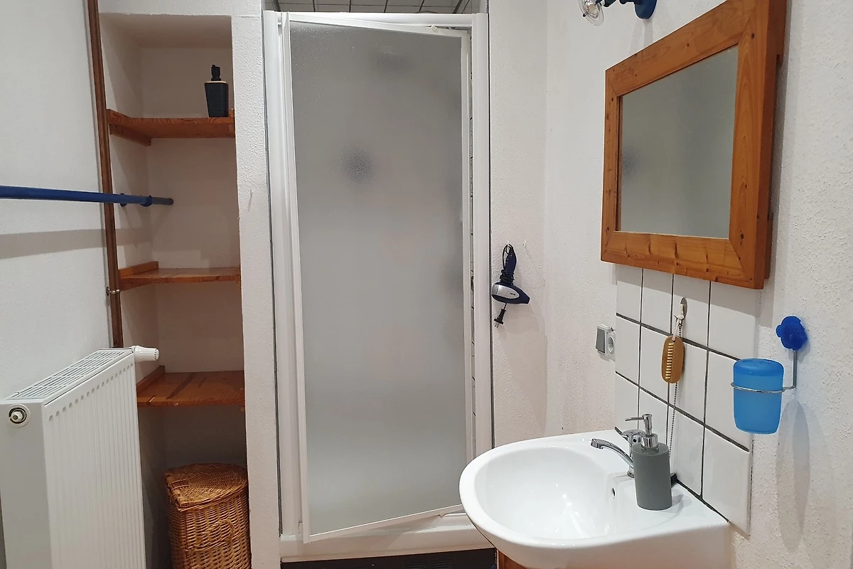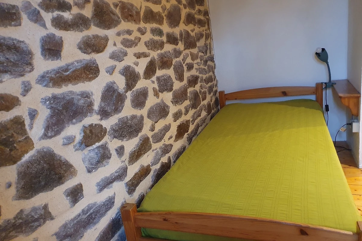 Via een wenteltrap bereikt u de eerste verdieping met de slaapkamers met houten parketvloeren. De kamer aan de noordzijde heeft een tweepersoonsbed (1,4m x 1,90m). De kamer op het zuiden is uitgerust met een tweepersoonsbed en een eenpersoonsbed (1,4m x 1,90m en 0,90 x 1,90m).