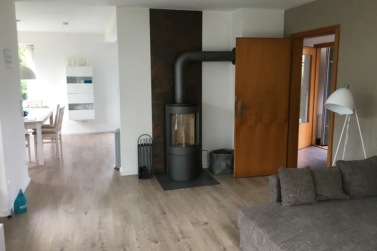 Er is ook een open haard in de woonkamer. Supergezellig op koude dagen!