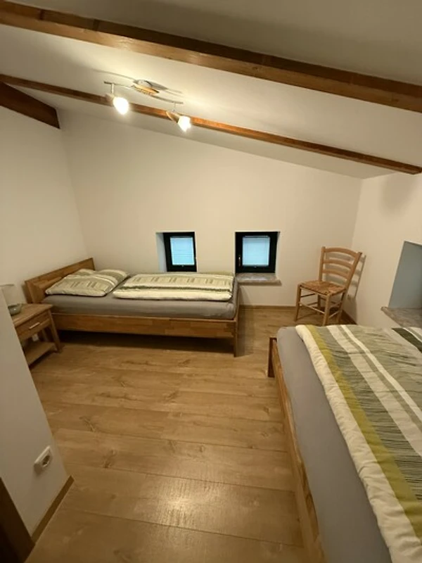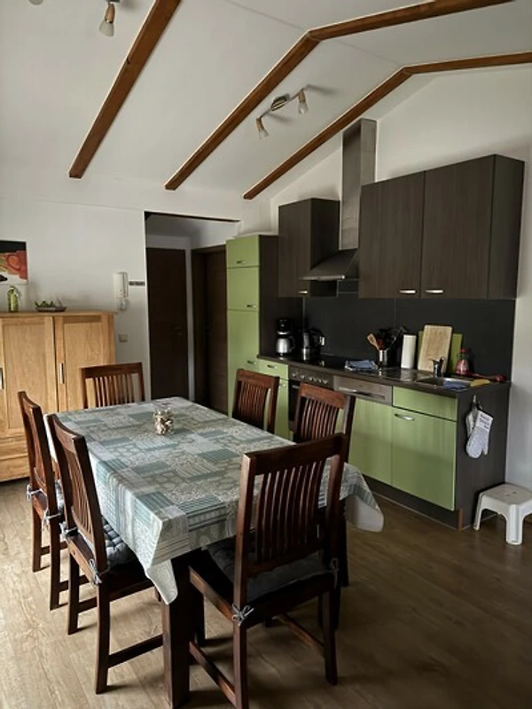In 2012 hebben we de oude graanschuur verbouwd tot een mooi appartement. Het appartement Zum Hof heeft een keuken-woonkamer met TV en internetaansluiting, 2 slaapkamers, 1 badkamer met douche. Het appartement is liefdevol ingericht en de charme van de graanschuur is bewaard gebleven. Op de begane grond is een gemeenschappelijke ruimte met open haard om te ontspannen, te spelen, te lezen. Buiten is er een terras met zitjes, barbecue, speeltuin en open haard om te ontspannen. Ideaal voor groepen en grote gezinnen.