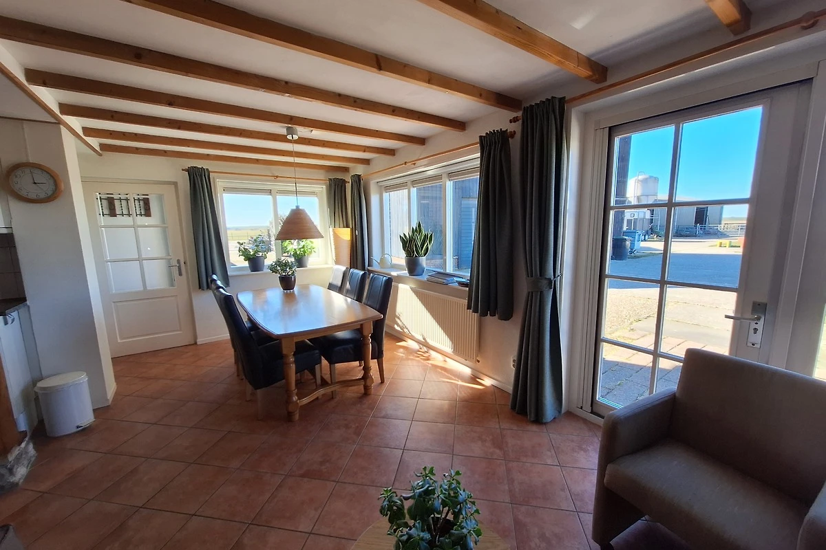 Appartement de 'Dors': Appartement voor 6-8 personen in een stolpboerderij op een schapenhouderij. Het appartement is uitgerust met allerlei luxe, zoals vloerverwarming, vaatwasser en luxiöses badkamer met douche, toilet en ligbad. Indeling: hal, toilet, badkamer en woonkamer met open keuken en twee-persoons slaapbank. Op de bovenste verdieping zijn drie slaapkamers, alle drie met twee eenpersoons bedde,en een toilet. Vanuit de woonkamer heb je een prachtig uitzicht over de Hargerpolder in de richting Petten en kunt u de Hondsbossche zeewering en strandopgang Camperduin zien liggen.