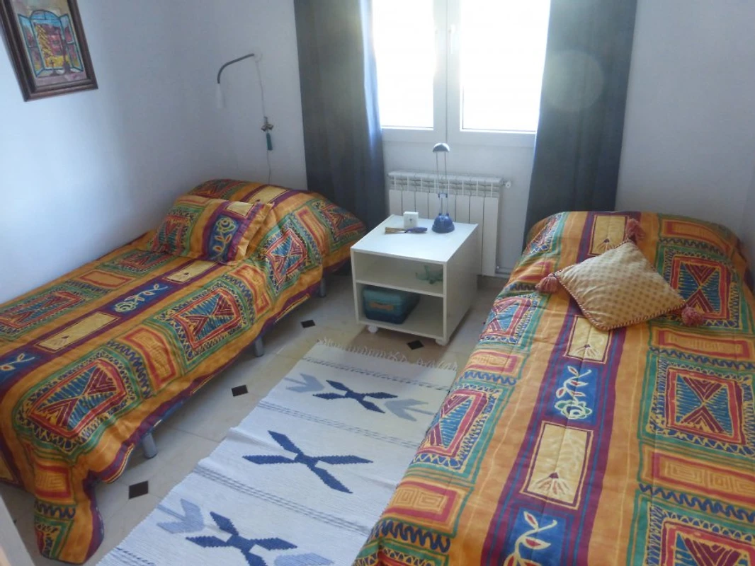 In de kelder is er nog een tweepersoons slaapkamer (2 eenpersoonsbedden), een slaapkamer, een badkamer met douche, en een grote woon / tv-kamer zijn met een groot overdekt terras. Hier zijn ook een wasmachine, strijkplank en strijkijzer.