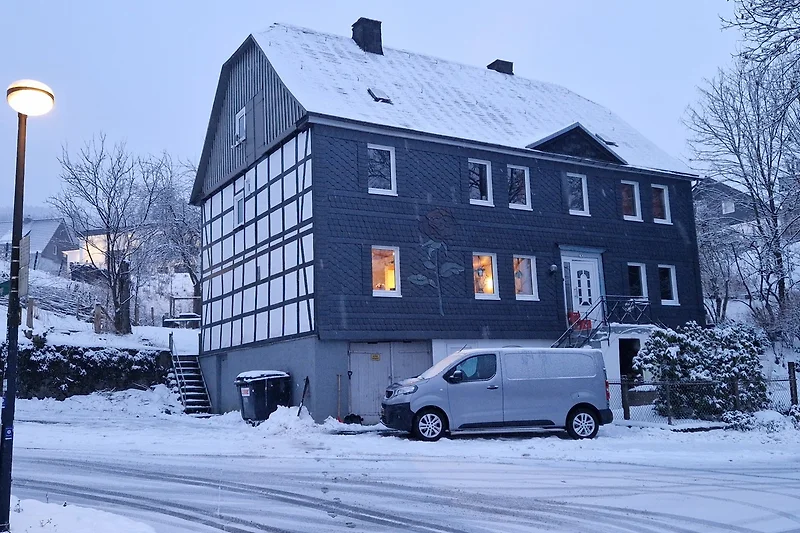 Gezellig en ruim vakantiehuis, op een oppervlakte van 250m², in Sauerland met 1 woonkamer, 1 grote keuken, 9 slaapkamers in kosmopolitisch thema, 3 badkamers, ideaal voor maximaal 18 gasten. Met 5 parkeerplaatsen, 2 voor het huis en 3 naast het huis, bent u van alle gemakken voorzien. In de keuken staat een houtkachel voor de gezelligheid.