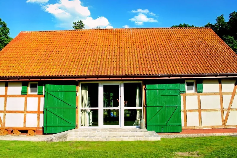 In het unieke biosfeerreservaat vindt u onze mooie neuentstandene Entspannungsoase vinden. Slechts 100 meter van het water biedt de rust van de natuur die de lucht gekust en laat je zinken in het comfort en ontspanning van de bijzondere sfeer van dit huis. Het mengsel van deze vakwerkhuis, in de onlangs paarden vonden hun huizen, maakt de magische sfeer van de voormalige schuur en een moderne uitbreiding. Het huis heeft Wi-fi is.
