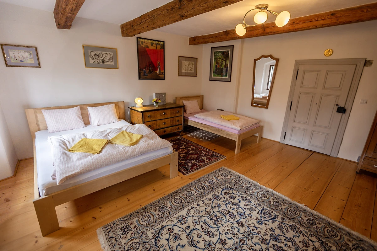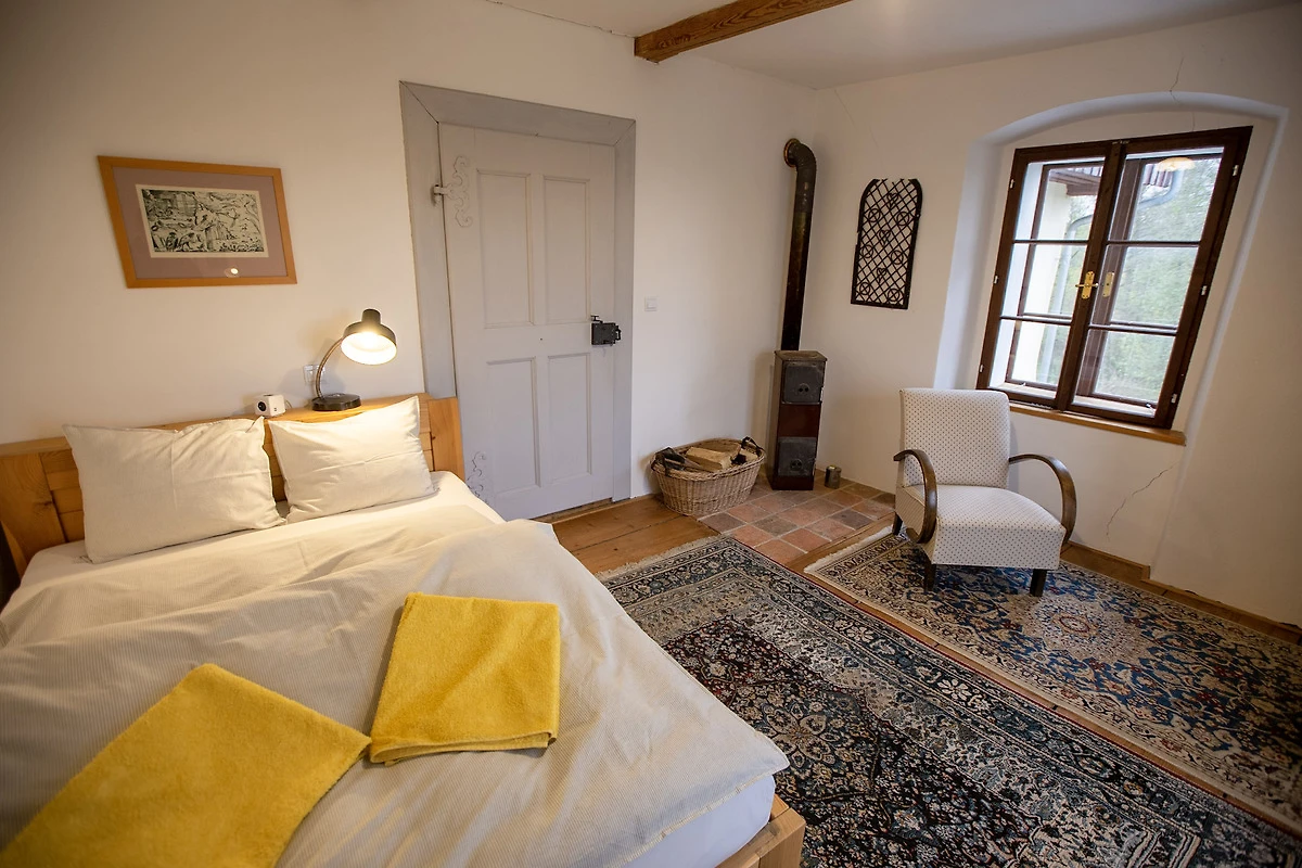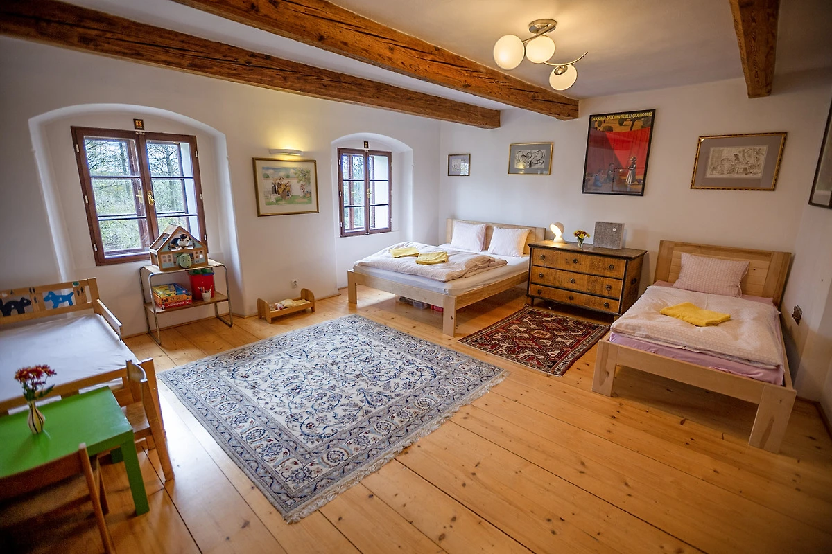 We hadden het huis gehuurd voor een familieweekend (9 volwassenen, 4 kinderen). De rustige ligging aan de rand van het dorp, de prachtige speelruimte voor de kinderen met grasveld, zandbak en trampoline, en de ongecompliceerde en zeer vriendelijke verhuurders maken het gemakkelijk om het huis aan te bevelen. Gezellige grote keuken met verhoogd "keukenbed" waar je heerlijk kunt "lummelen" en poppenspel kan spelen, de gordijnen maken het mogelijk! Moderne badkamers, goede bedden, voldoende ruimte voor voedselvoorraden in de voorraadkast en kelder. Geen televisie - geweldig! In plaats daarvan een bioscoopkamer met beamer en dvd's. Tsjechische en Duitse boeken, spellen. In de grote tuin is er een gezellige vuurplaats waar we stokbrood roosterden. Het lichte bos is vlakbij, waar we een zoekspel organiseerden. Als we langer waren gebleven, hadden we zeker meer gebruik gemaakt van de culturele mogelijkheden in de omgeving, die er in overvloed zijn.