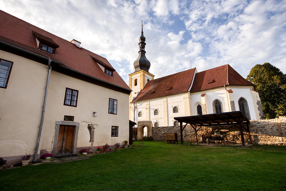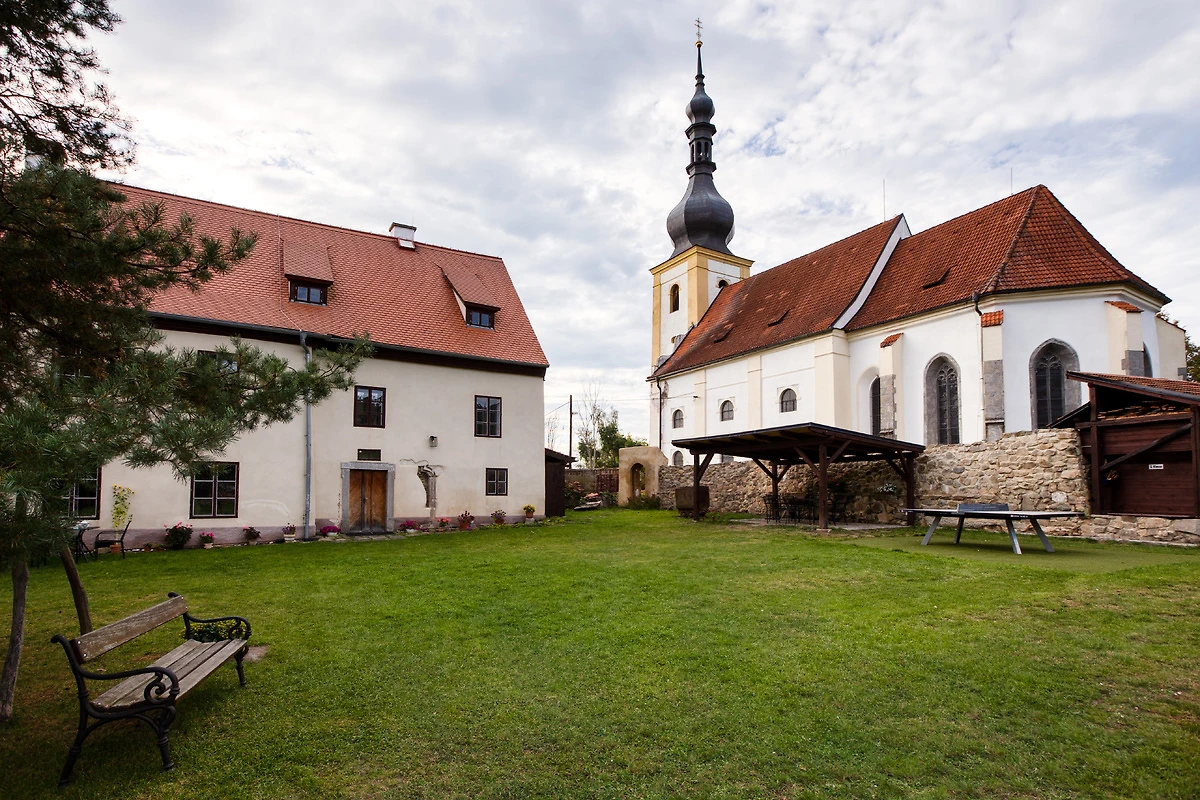 Het huis ligt op een heuvel, naast de kerk boven het dorp Bruck am Hammer (Brod nad Tichou). De grote tuin omringt de hele villa en biedt een mooie plek om uit te rusten, te spelen of 's avonds te barbecueën. Geen directe buren, absolute rust en een prachtig uitzicht over de weilanden naar het niet ver gelegen bos.