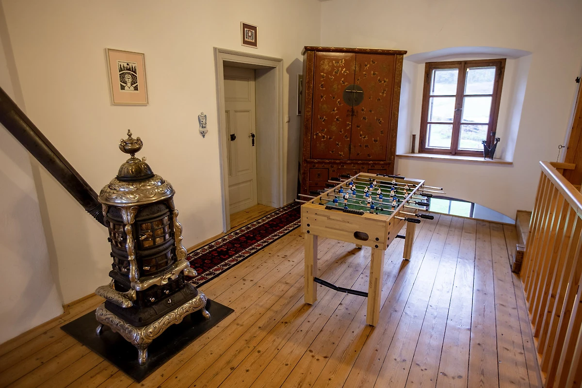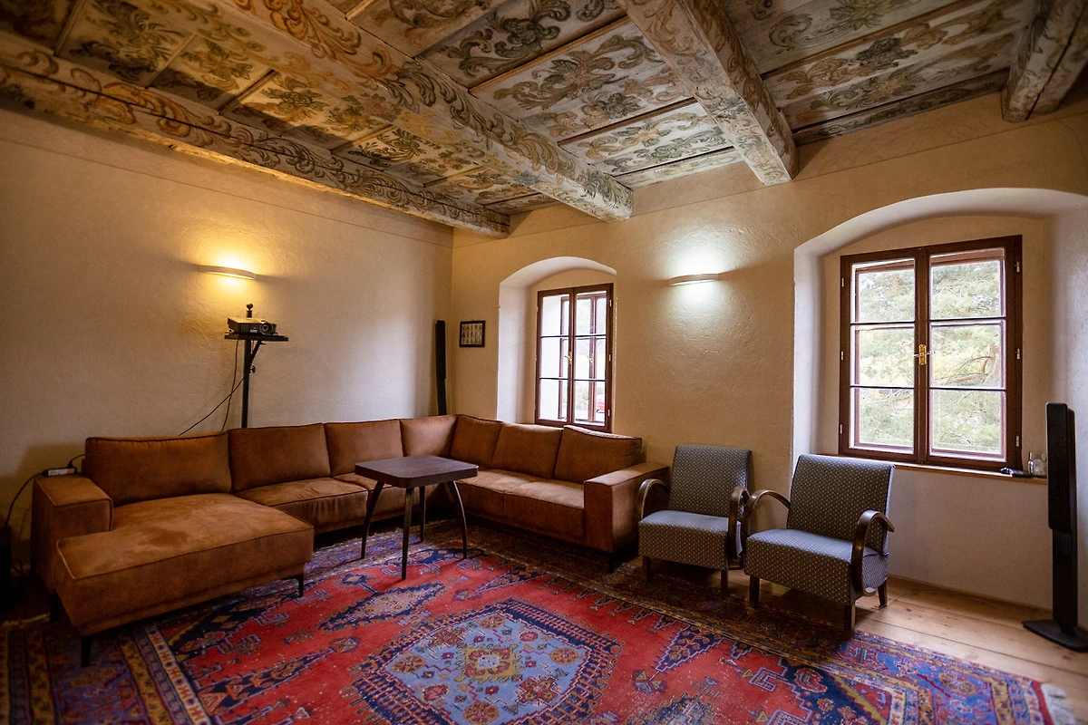 De villa staat op de gotische fundamenten van een voormalig fort, dat herkenbaar is aan de gotische kelders, een portaal en metersdikke muren. Het barokke bijgebouw is uniek met zijn 17e-eeuwse beschilderde plafond. De slaapkamers en de keuken zijn stijlvol ingericht met antieke en moderne meubels, en in de gangen hangen veel schilderijen en tekeningen. Met een thuisbioscoop met beamer of met de barbecue in de tuin is een ontspannen avond gegarandeerd.
