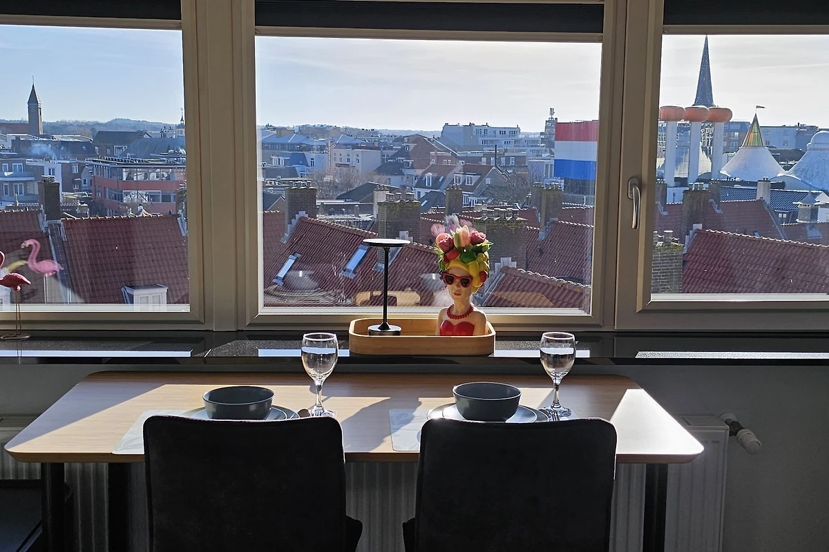 Het uitzicht is geweldig over Zandvoort en vooral leuk om van te genieten met oud en nieuw.
