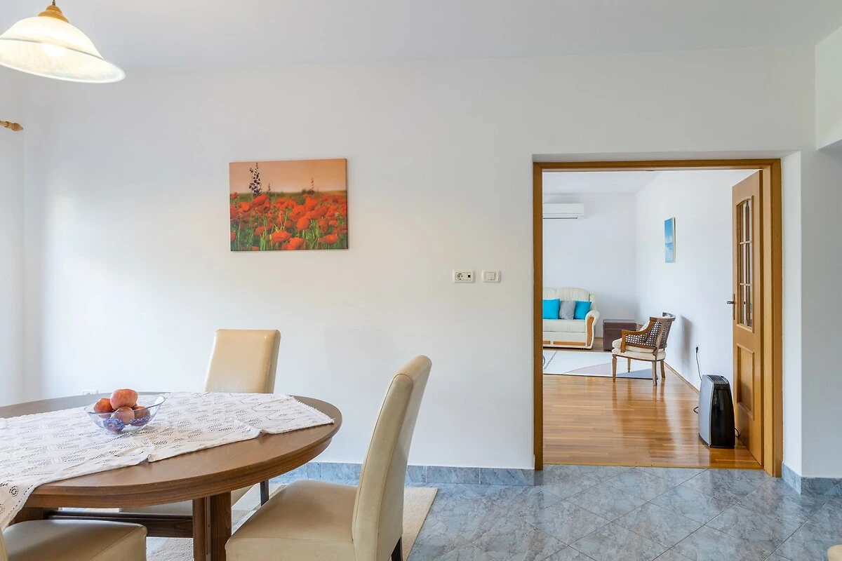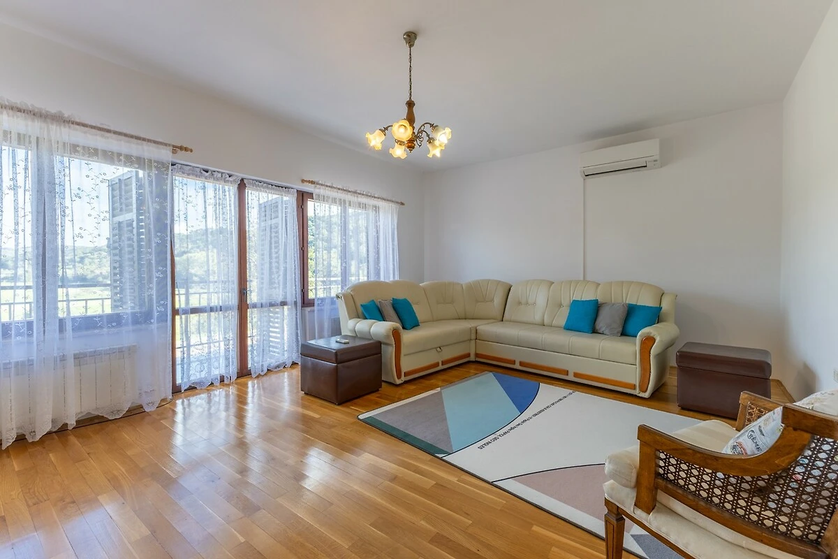 Appartement op de begane grond van Villa Maria Buzet biedt een comfortabel verblijf in een rustige omgeving omgeven door groen en natuur, nabij het charmante stadje Buzet. Het beschikt over twee gezellige slaapkamers met tweepersoonsbedden, een moderne badkamer met douche, een volledig uitgeruste keuken en een comfortabele woonkamer met eethoek, ideaal om te ontspannen na een dag Istrië verkennen. Het appartement combineert traditionele Istrische stijl met moderne details en creëert zo een warme en uitnodigende sfeer. Gasten kunnen genieten van een terras met een prachtig uitzicht op de Mirna-riviervallei, een gedeeld zwembad omgeven door natuur, gratis wifi en privéparkeergelegenheid. De ligging van Villa Maria Buzet biedt volledige rust en privacy, maar is toch dicht bij lokale restaurants, wandel- en fietspaden en de authentieke charme van het binnenland van Istrië, waardoor het een perfecte keuze is voor gezinnen of koppels die op zoek zijn naar een ontspannen vakantie in een rustige en natuurlijke omgeving.