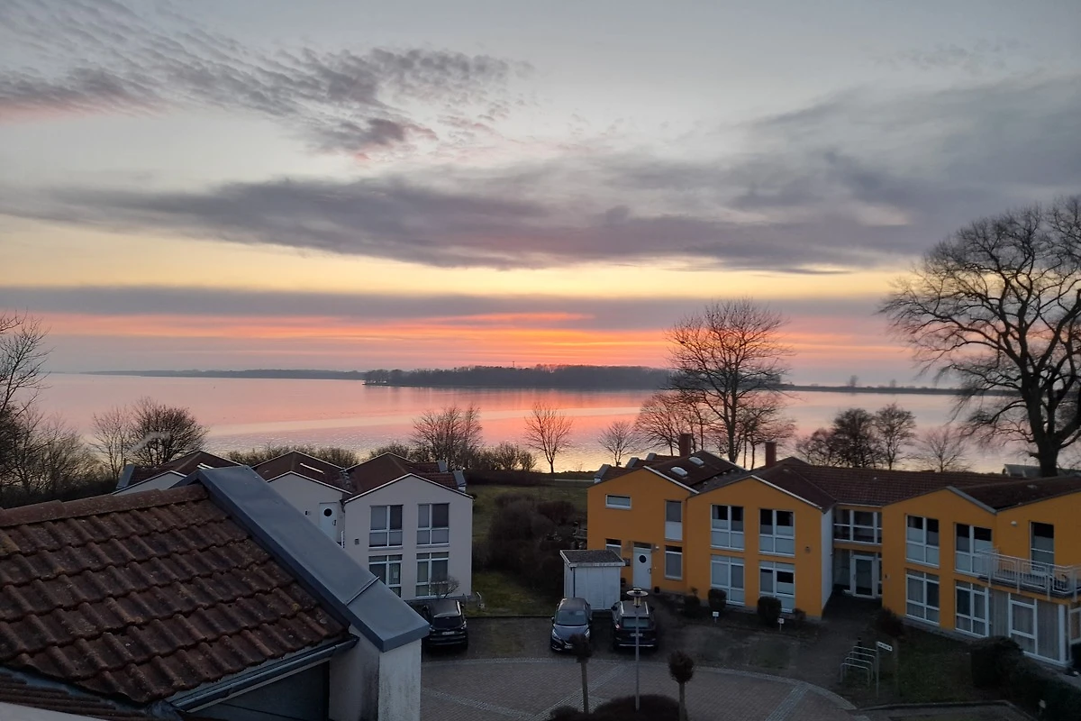 Het appartement is ca. 72 m² groot, ligt op het hoogste punt van een vakantiecomplex en beschikt over een ruime woon-eetkamer met kitchenette, sofa’s, tv en eettafel, daarnaast over twee slaapkamers (één met tweepersoonsbed, één met eenpersoonsbed met uittrekmogelijkheid). Het bijzondere: zowel in de woonkamer als in de grotere slaapkamer is één wand volledig van glas, incl. ca. 80 cm in het plafond. In de woonkamer kun je, als je de deuren naar het Franse balkon opent, tuinmeubelen direct ervoor zetten en heb je zo het gevoel direct in de frisse lucht te zitten – met vrij uitzicht op het Salzhaff tot aan de Oostzee.