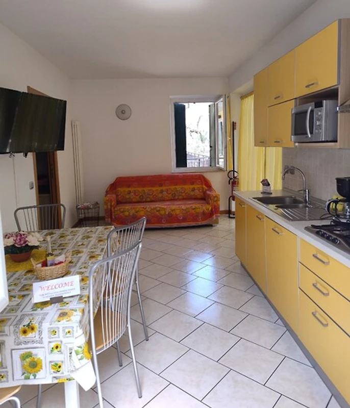 Het appartement is ongeveer 150 meter van het meer en van de stad. Het appartement bevindt zich in de olijfbomen in een zeer rustige omgeving. Dus het is slechts 2 minuten van het centrum waar u bakker, supermarkt, apotheek, krantenwinkel Garages, bank, postkantoor. Het ziekenhuis (SEH) is op 5 km Distant Een 20 m. Er is een kleine supermarkt en sterven bushalte (koerier langs de rivier om te stoppen naar Verona en in de buurt van het vliegveld, ook) De koerier ook komen om de trein te stoppen. Bus komt er een verdere Finoa in Venetië 3 keer per week, maar niet te spreken over de particuliere bureaus en taxiservice