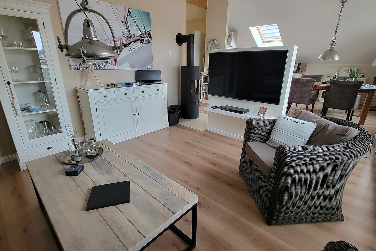 Zoals onze titel al aangeeft: een prachtig vakantieappartement dat alles, maar dan ook alles biedt. Geweldige locatie, prachtige inrichting, perfect uitgeruste keuken, zeer vriendelijke begeleiding ter plaatse, gastgeschenk en... Het ontbreekt gewoon aan niets! Zout, suiker, keukenpapier, olie, vaatwastabletten, kruiden, spelletjes, geweldige films, uitgebreide boeken- en cd-collectie. Hoewel we slechts 3 dagen in dit pareltje mochten doorbrengen, waren ze zeer intens. Dit stukje aarde biedt alles wat je nodig hebt voor een perfecte vakantie. De korte afstanden, de boulevard en jachthaven voor het huis, de pier en het strand slechts op 80 meter afstand, de visserijhaven, de oude stad, de Graswarder, alles op slechts een steenworp afstand! Gewoon perfect! Een terugkeer is al gepland.