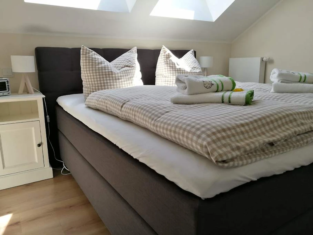 84m² woonruimte op de zolder, voor max. 4 volwassenen + 1 peuter, met uitzicht op de Oostzee, de jachthaven en het binnenmeer, wacht u een flat die u "feelmeer" biedt. Uw kleine viervoeter (hond) is ook van harte welkom.
