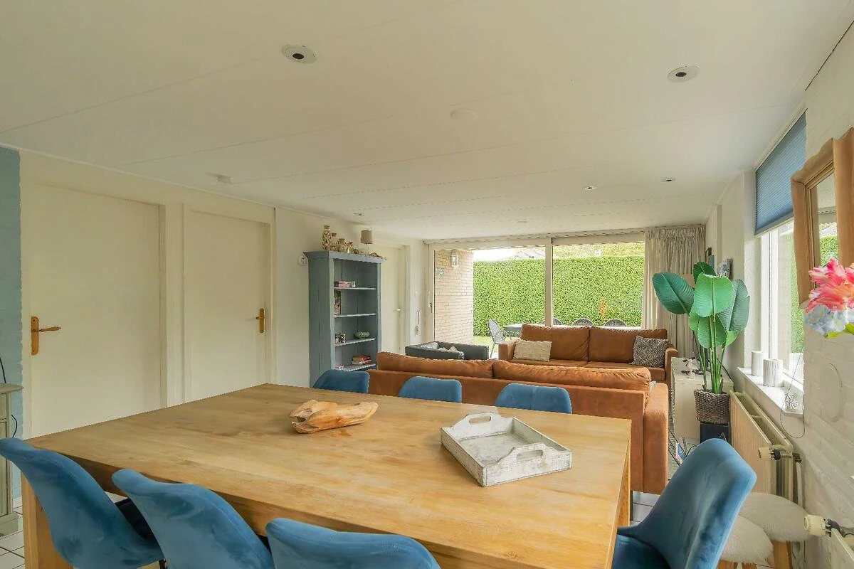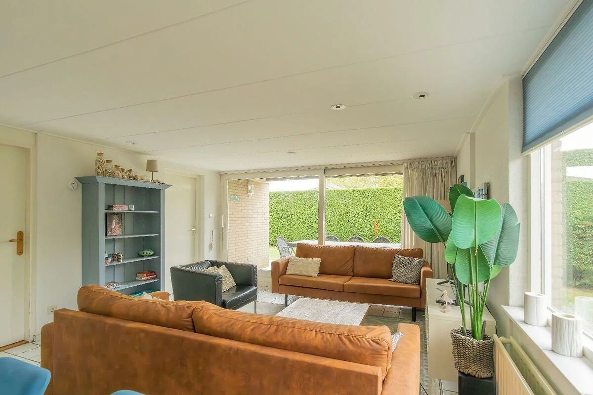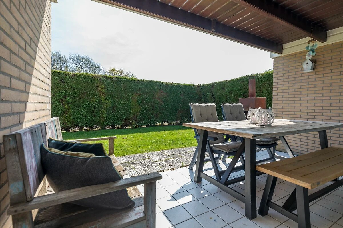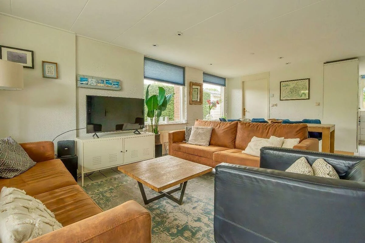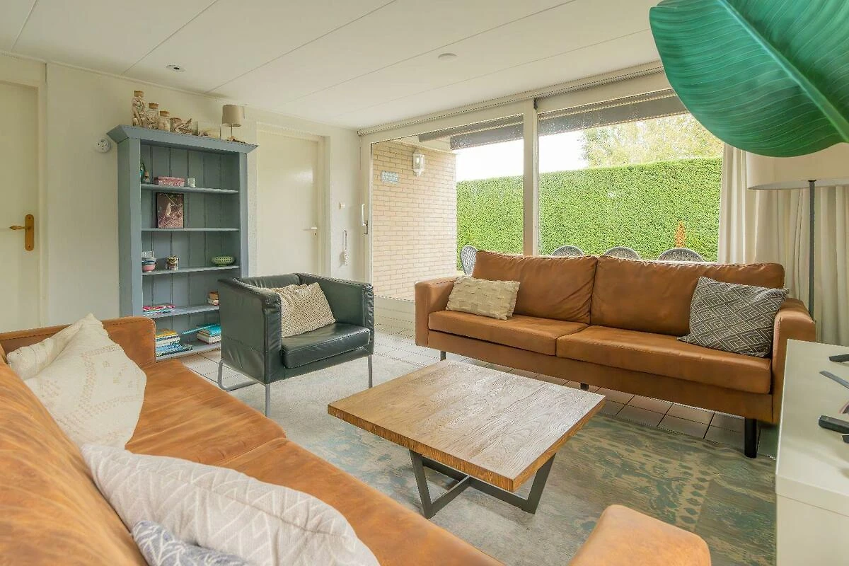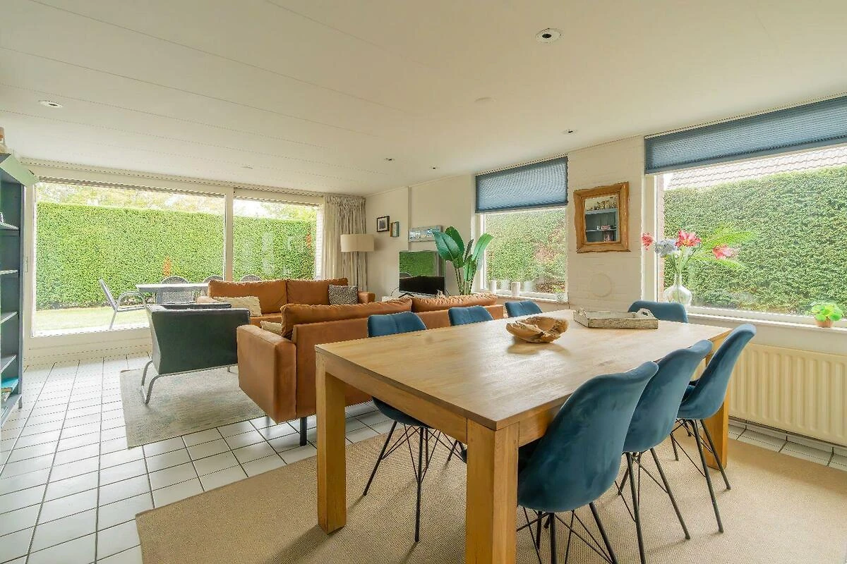 De lichte woonkamer op de begane grond is uitgerust met een ruime, gezellige zithoek en een eetgedeelte. Via de schuifpui bereikt u het verlichte, overdekte terras, waar u ‘s avonds nog heerlijk kunt ontspannen met een goed glas wijn.