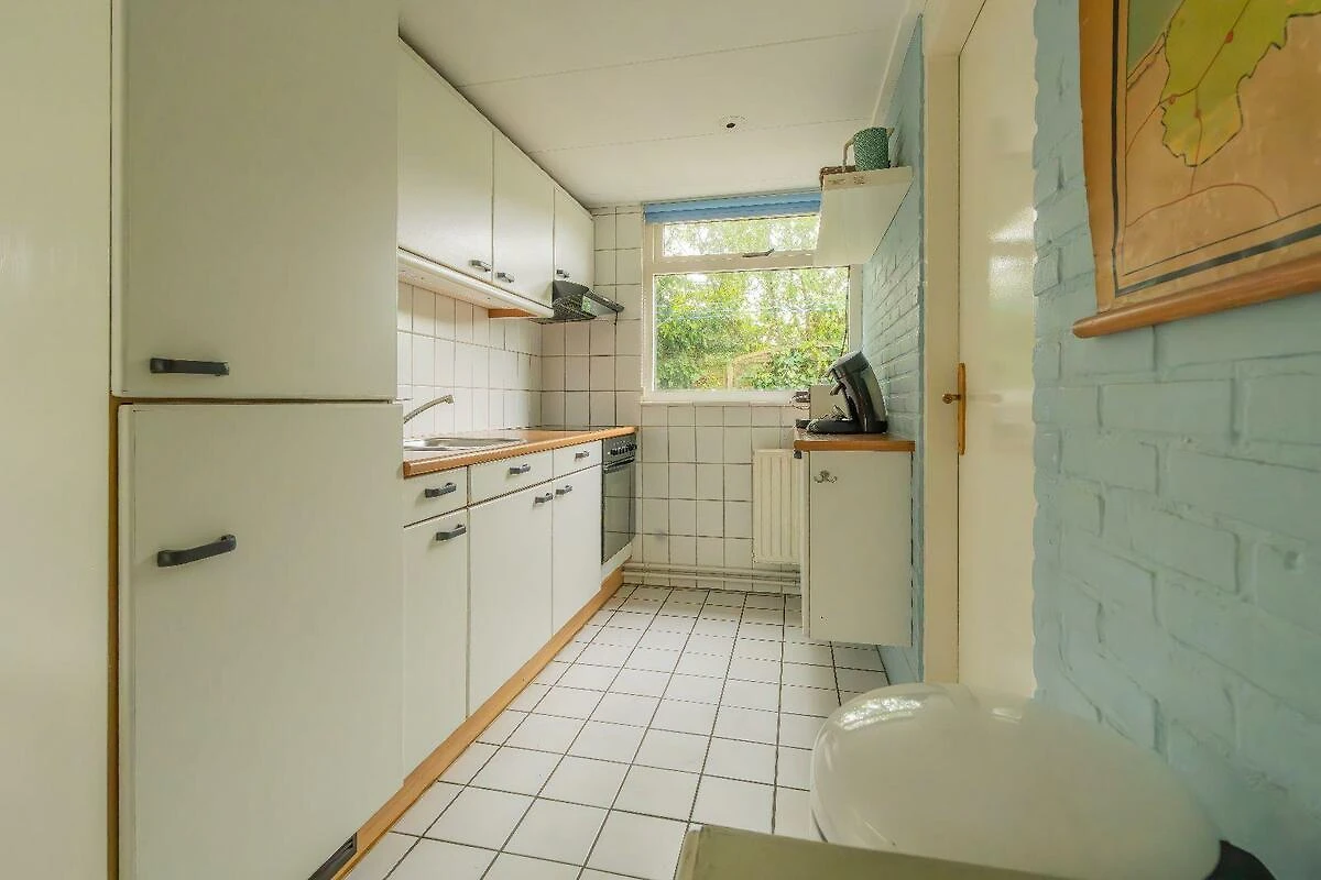 De open keuken is voorzien van alle comfort, waaronder een keramische kookplaat, een koelkast, en een oven. In de bijkeuken staat een vriezer.