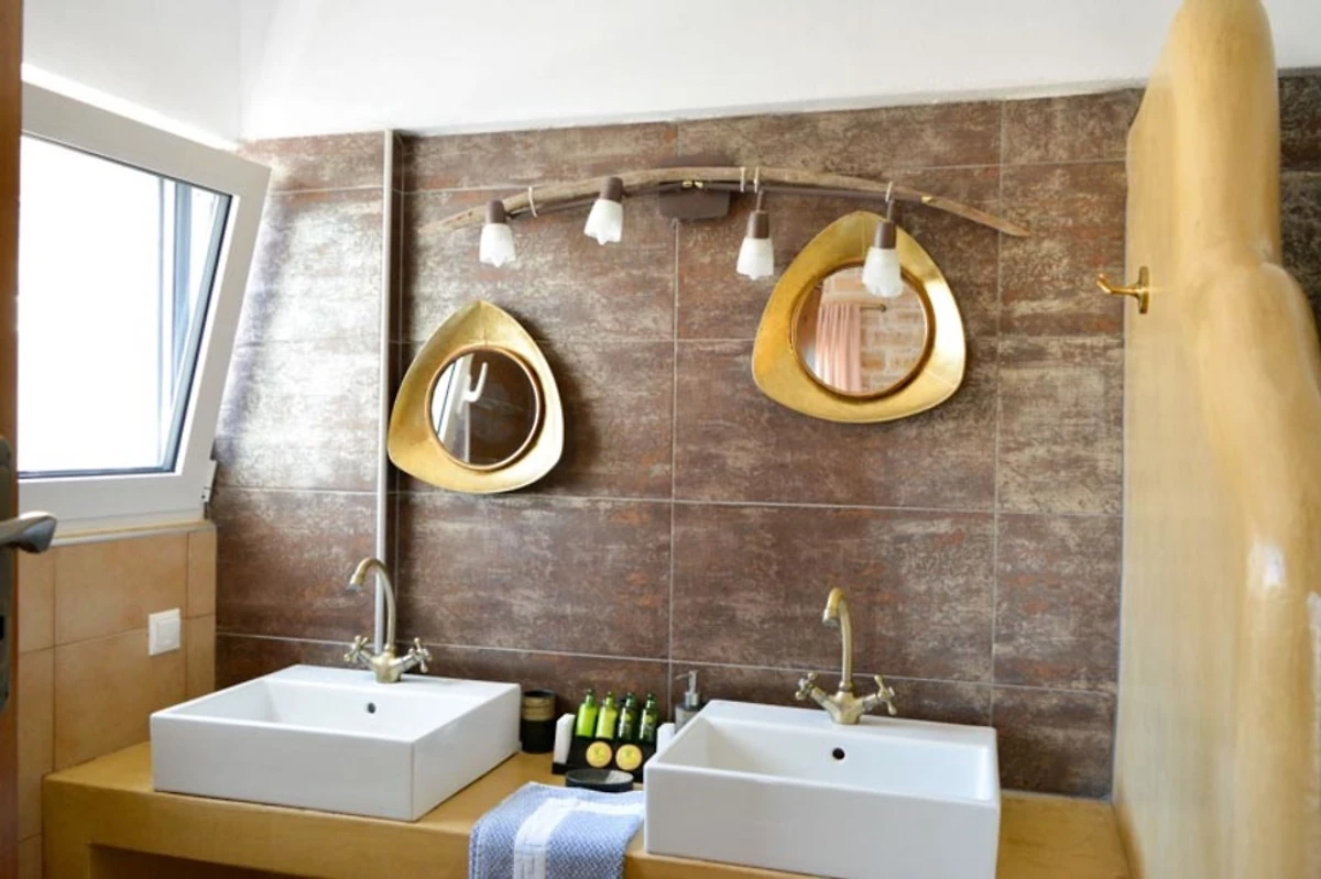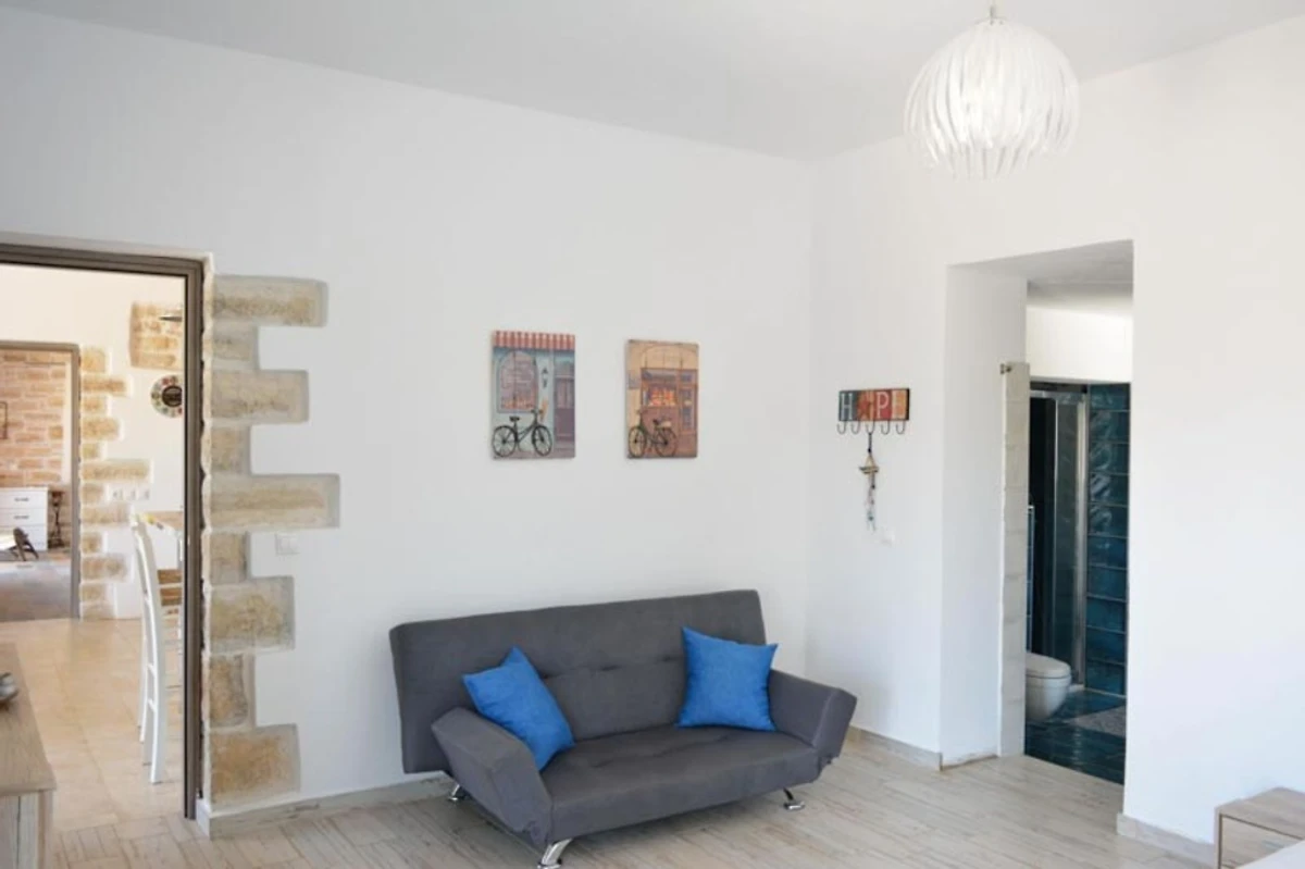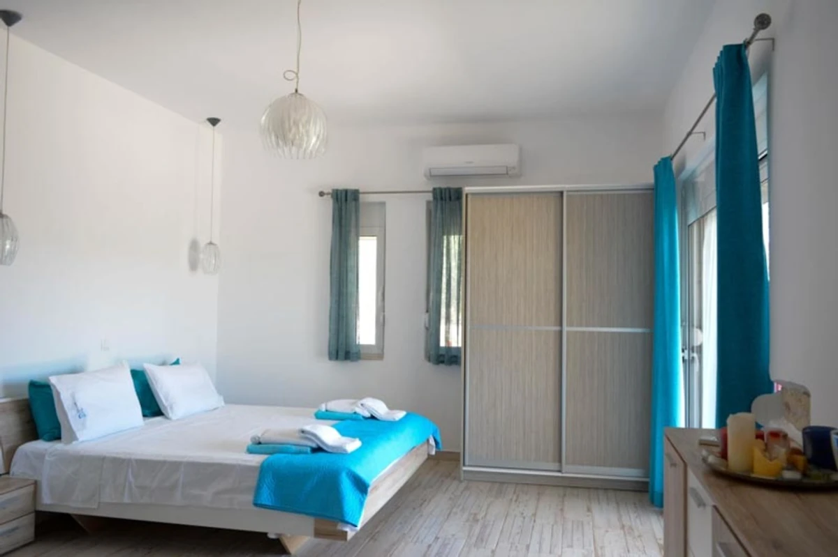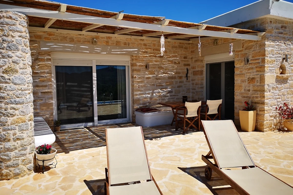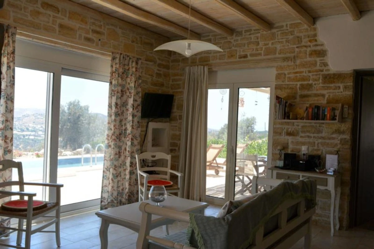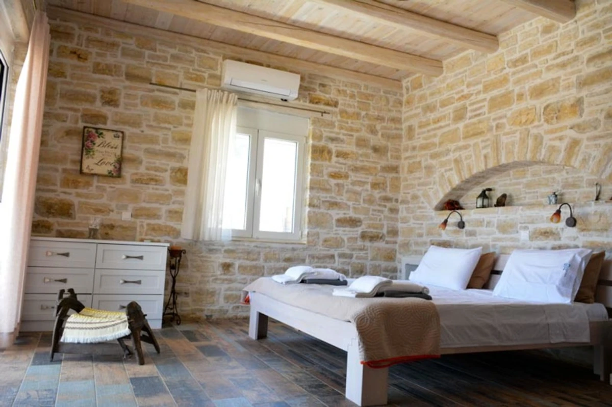 Het interieur (150 m²) van de begane grond natuurstenen villa biedt u: twee tweepersoons slaapkamers met eigen badkamer en kingsize bedden, een woon / eetkamer en een volledig uitgeruste keuken.