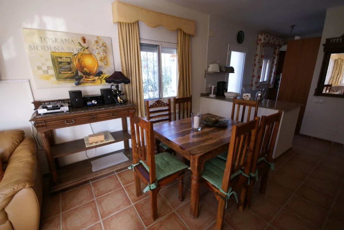 In de omgeving van Villa Felix zijn er geen hoogbouw. U kunt gemakkelijk in de buurt, in de strandbar "Friends", van een zeer vriendelijke Nederlander, of in het het hele jaar geopende restaurant 'la Riviera', bij Fran, typisch Spaans eten. In de zomermaanden kunt u uw boodschappen, of het nu 's ochtends de verse broodjes zijn of het vlees om te grillen, in het kleine marktje direct naast de deur doen, zonder met de auto te hoeven rijden. Ook vervalt bij het dagelijkse strandbezoek elk parkeerprobleem, omdat u uw voertuig gemakkelijk bij de villa kunt parkeren. Het vervelende gesjouw met strandspullen, vaak van ver weg, is voor u niet nodig, omdat uw verblijf op 15 m van het zandstrand ligt. Als u iets voor het strand bent vergeten, of alleen maar naar de koelkast wilt, dan is het niet ver naar de villa.