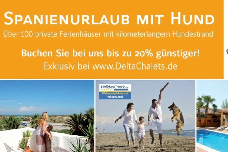| 130 private Feriehäuser huur op Delta Chalets, de enige geautoriseerde partner van de Spaanse Tourist Board in de Ebro-delta, tot 30% goedkoper dan in reisbureaus door direct boeken bij de eigenaar. Duitse Property Management met 24-uurs noodhulp paraatheid Deutschsprachiger dierenarts, omheind land, 19 restaurants, 5 tapas bars op het strand, Steakhouse, bakker, supermarkt, alles wat u zoekt op vakantie kan worden gevonden in de badplaats Riumar. Een aanrader voor vissers, gezinnen met honden, fietsers en wandelaars. Bijzonder kindvriendelijke aanbod met speeltuinen, kinder-pretpark, licht glooiend fijn Sanddstrände, geen Masssentourismus. Honden leven gratis met aparte hond strand. Current Vakantie Brochures 2017 krijg je als gratis op aanvraag. Alle prive vakantiehuis biedt rechtstreeks van de eigenaar, bezoek de website |