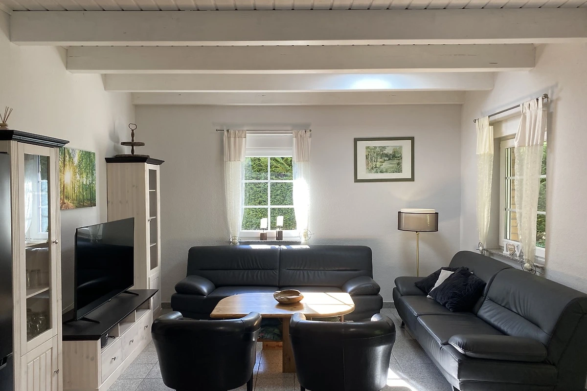 Het vakantiehuis ligt direct aan het bos en biedt plaats aan 12 personen. Het is uitgerust met een woonkamer, een keuken, twee badkamers en twee extra gastentoiletten.