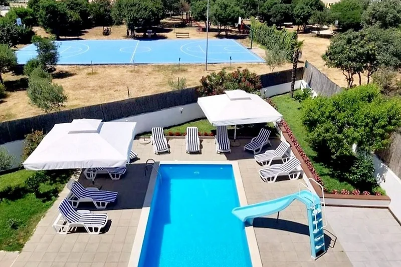 De villa ligt op een omheind perceel van 1100 m² en heeft een woonoppervlakte van 160 m². Ze biedt accommodatie voor maximaal twaalf personen. De villa is verdeeld over twee verdiepingen, die met een buitentrap met elkaar verbonden zijn. Op de begane grond bevinden zich de gekoelde eet- en woonkamer, de keuken, een van de in totaal drie badkamers en twee van de in totaal zes slaapkamers.