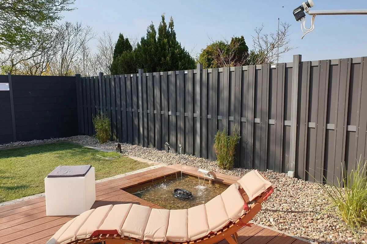 De tuin zou mooi zijn als hij beter onderhouden werd, de relaxligstoel is totaal kapot en de wateroase is zo vies en groen water (hadden hond mee) moesten hem constant daar weg halen omdat het gevaarlijk is voor honden om dat te drinken.