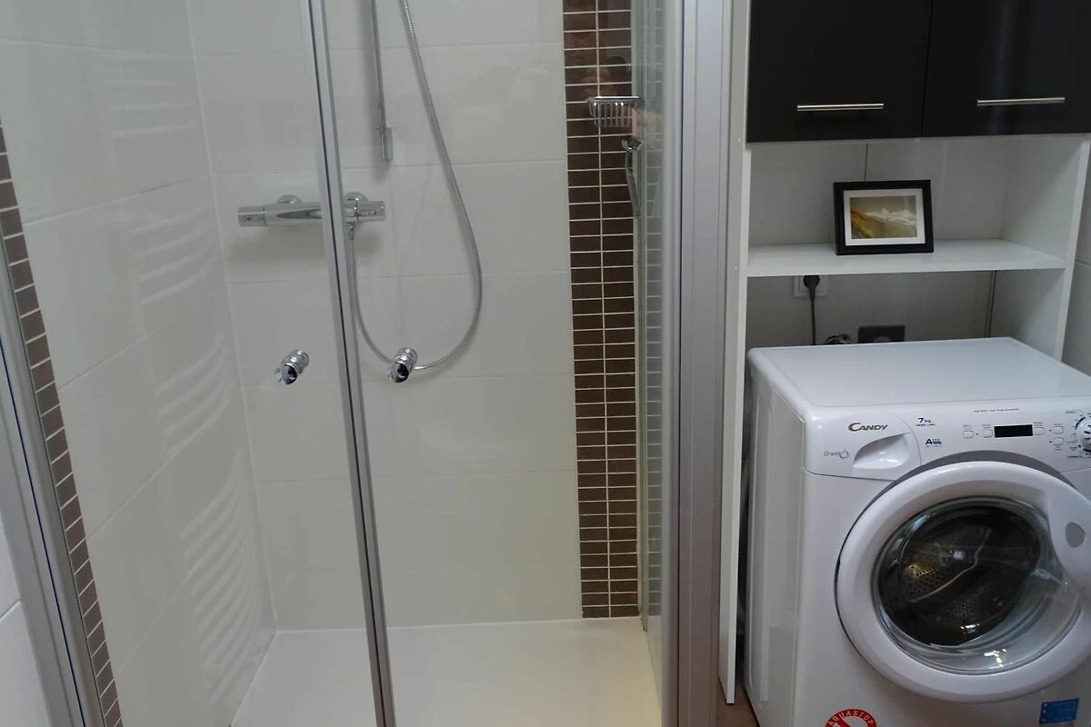 Functioneel ingericht. Nogal spartaans. In de keuken, helaas, een mengelmoes van borden en glazen. Helaas alleen plastic kommen. Het zag eruit alsof het eerder was gerenoveerd. De slaapkamer was nogal liefdeloos ingericht, d.w.z. functioneel: Bed, kledingkast, nachtkastje. Helaas laten vorige huurders de uitwerpselen van hun honden achter. De afvoer in de douche zat vol hondenhaar en het water liep niet weg en op het terras stond nog steeds de emmer met de uitwerpselenzakjes
