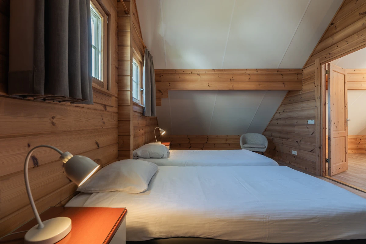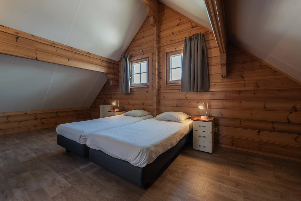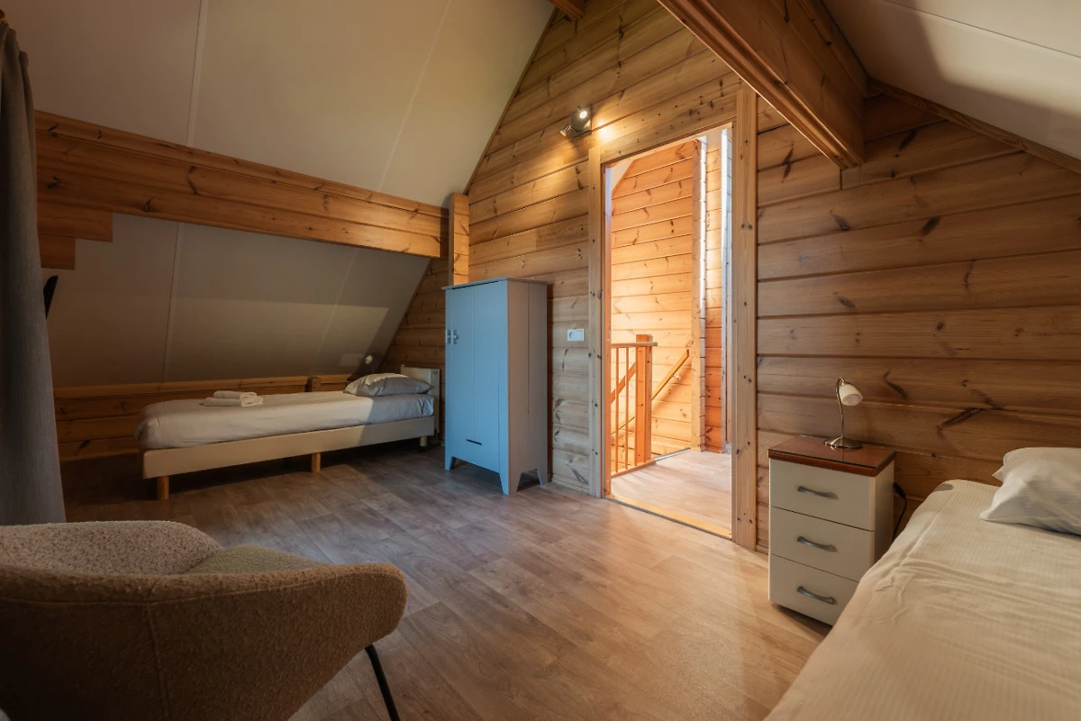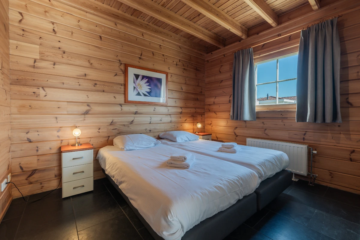 De begane grond bestaat uit een grote woonkamer met zit- en eethoek, open keuken en een slaapkamer met 2 eenpersoonsbedden, badkamer met luxe massage douche, dubbele wastafel en toilet. Op de 1e verdieping is er een apart toilet en twee slaapkamers met 2 eenpersoonsbedden.